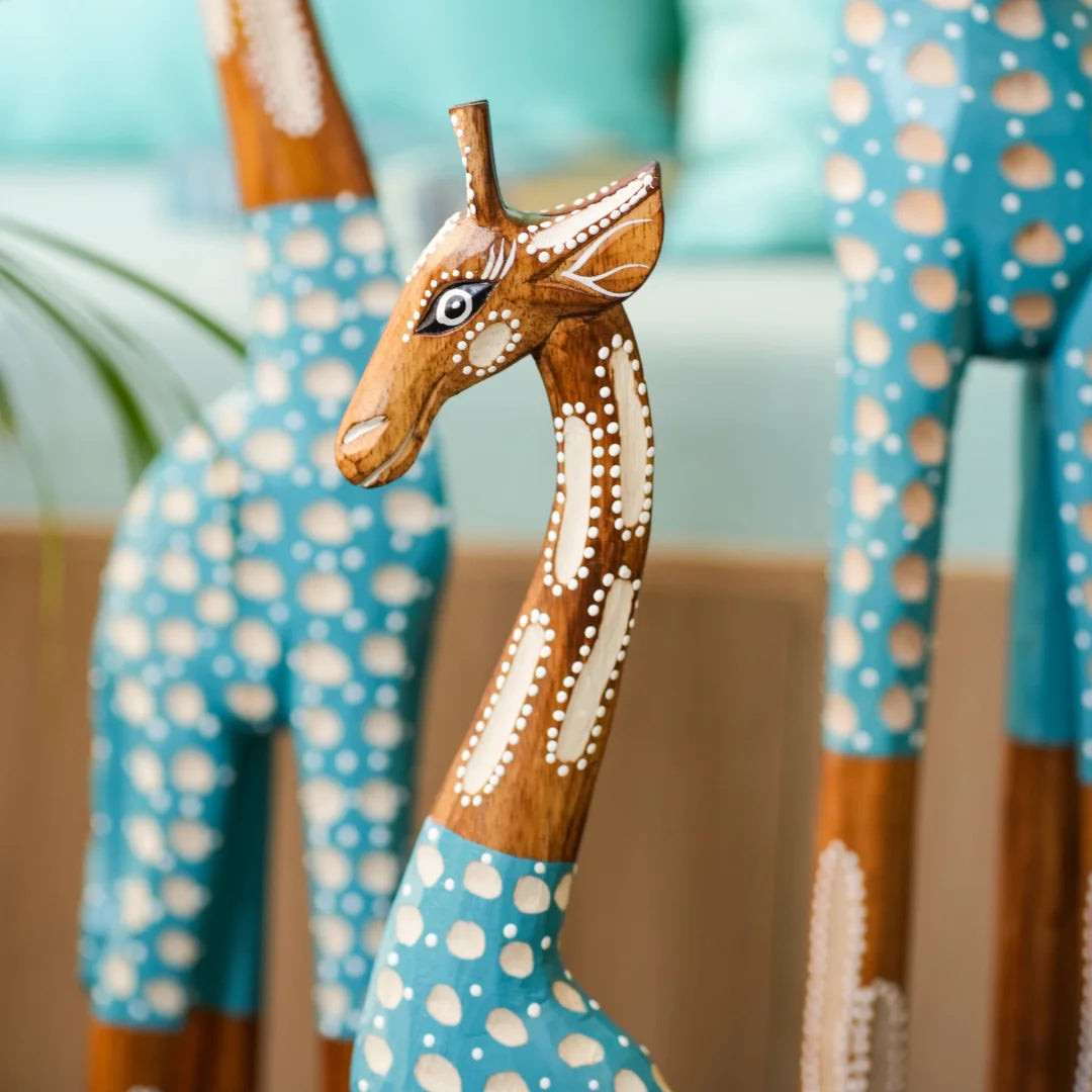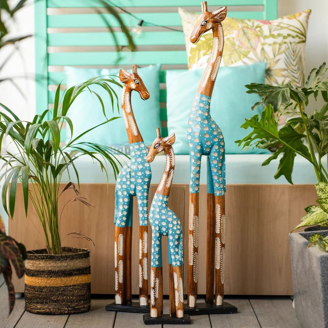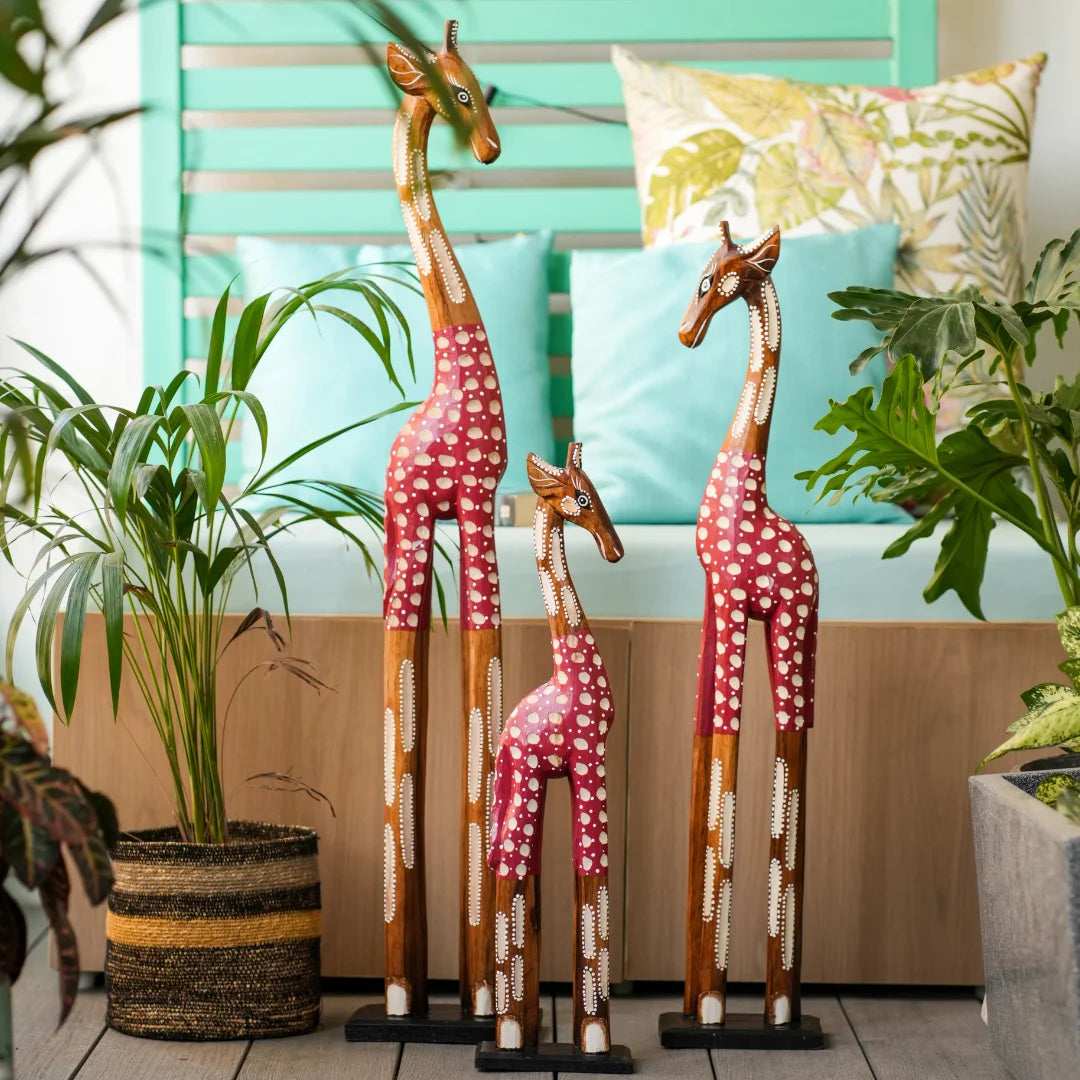 Bring the majesty of the savannah into your home with our set of giraffe statues. Crafted with attention to detail, these beautiful creatures will transport you to the wild grasslands of Africa.
