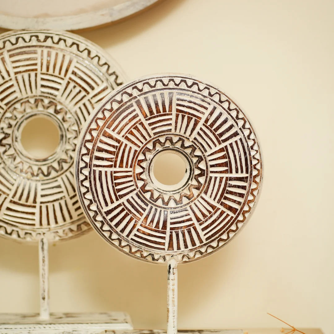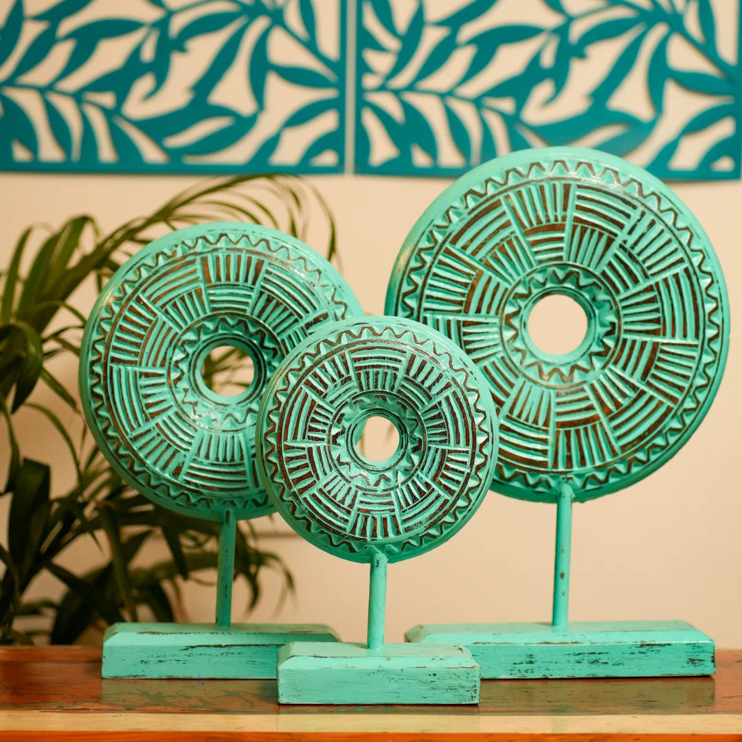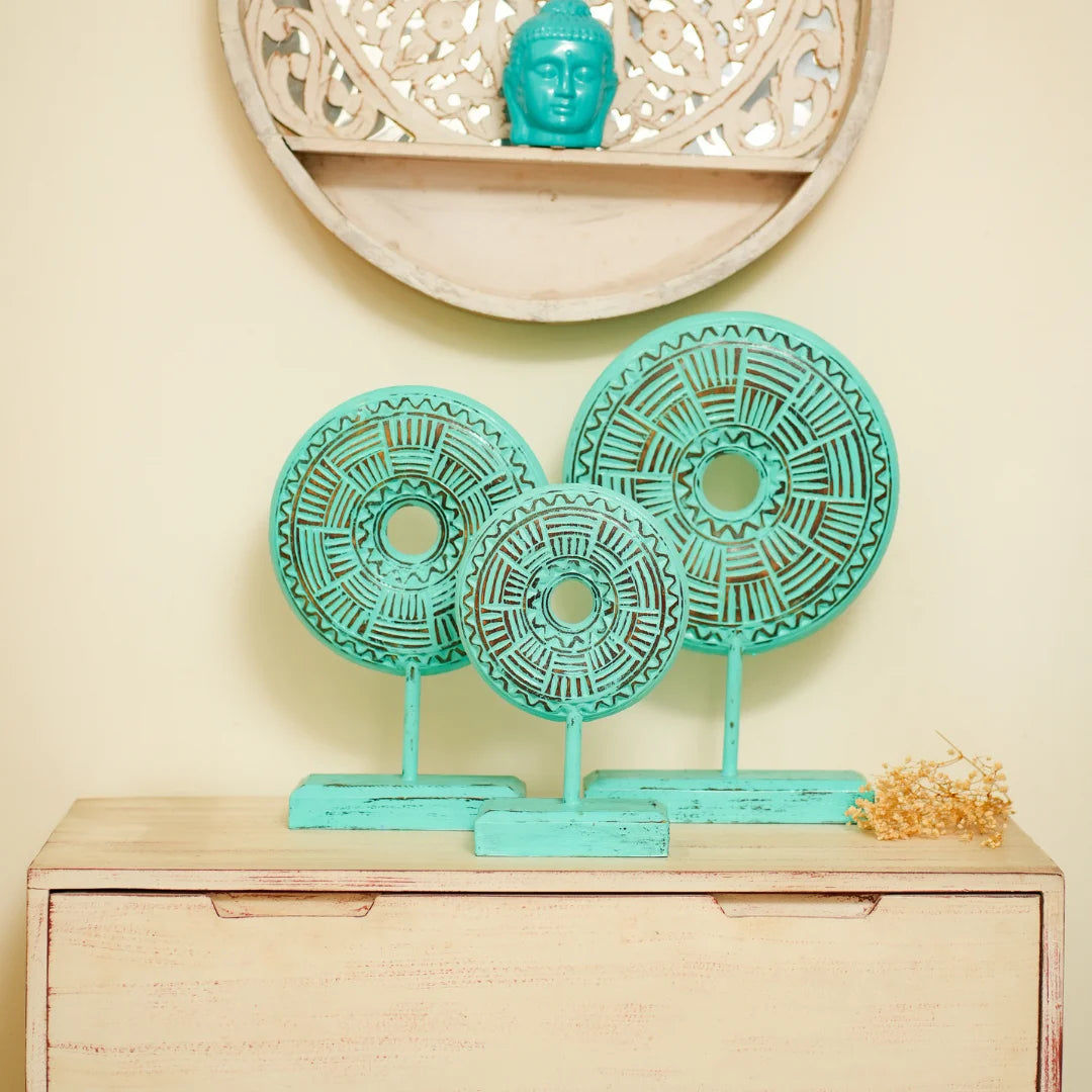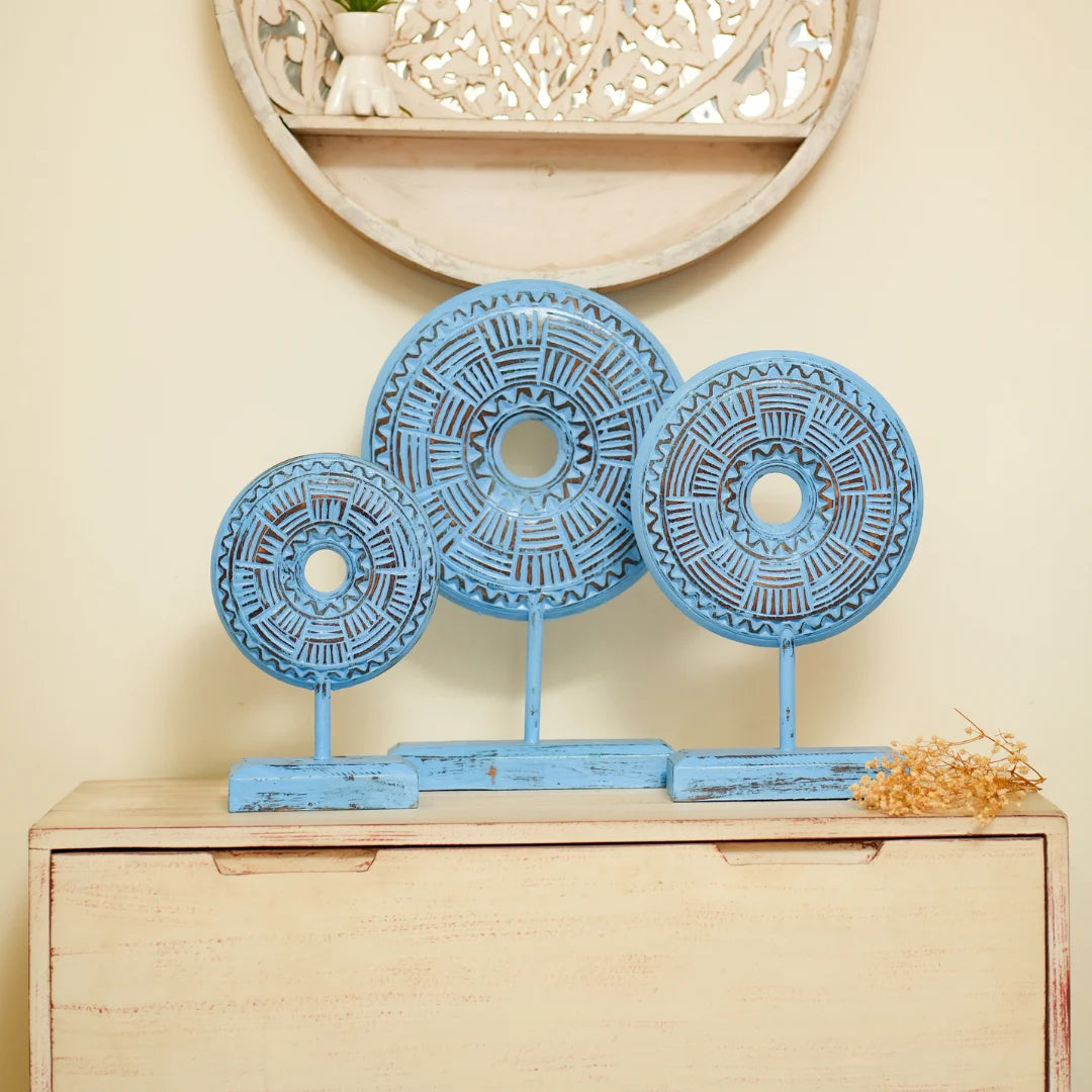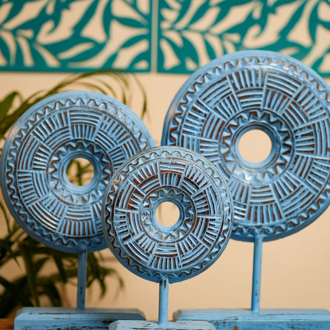 Our Rustic Rounds wooden table decor set is handcrafted from high-quality, sustainably sourced wood. Each of the three round pieces features a unique, distressed finish, showcasing the natural grain and texture of the wood. Perfect for adding a touch of rustic charm to your home, this set is ideal for coffee tables, side tables, or shelves.