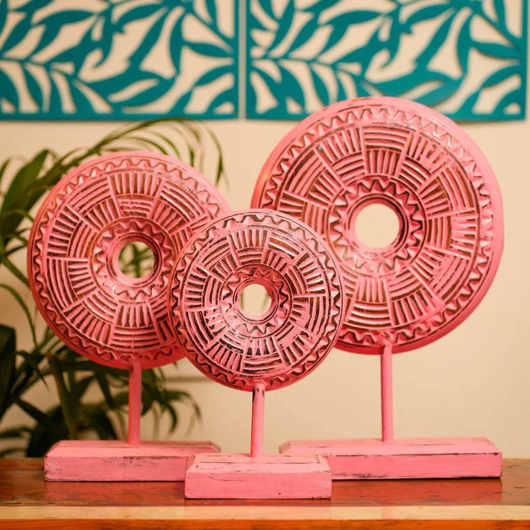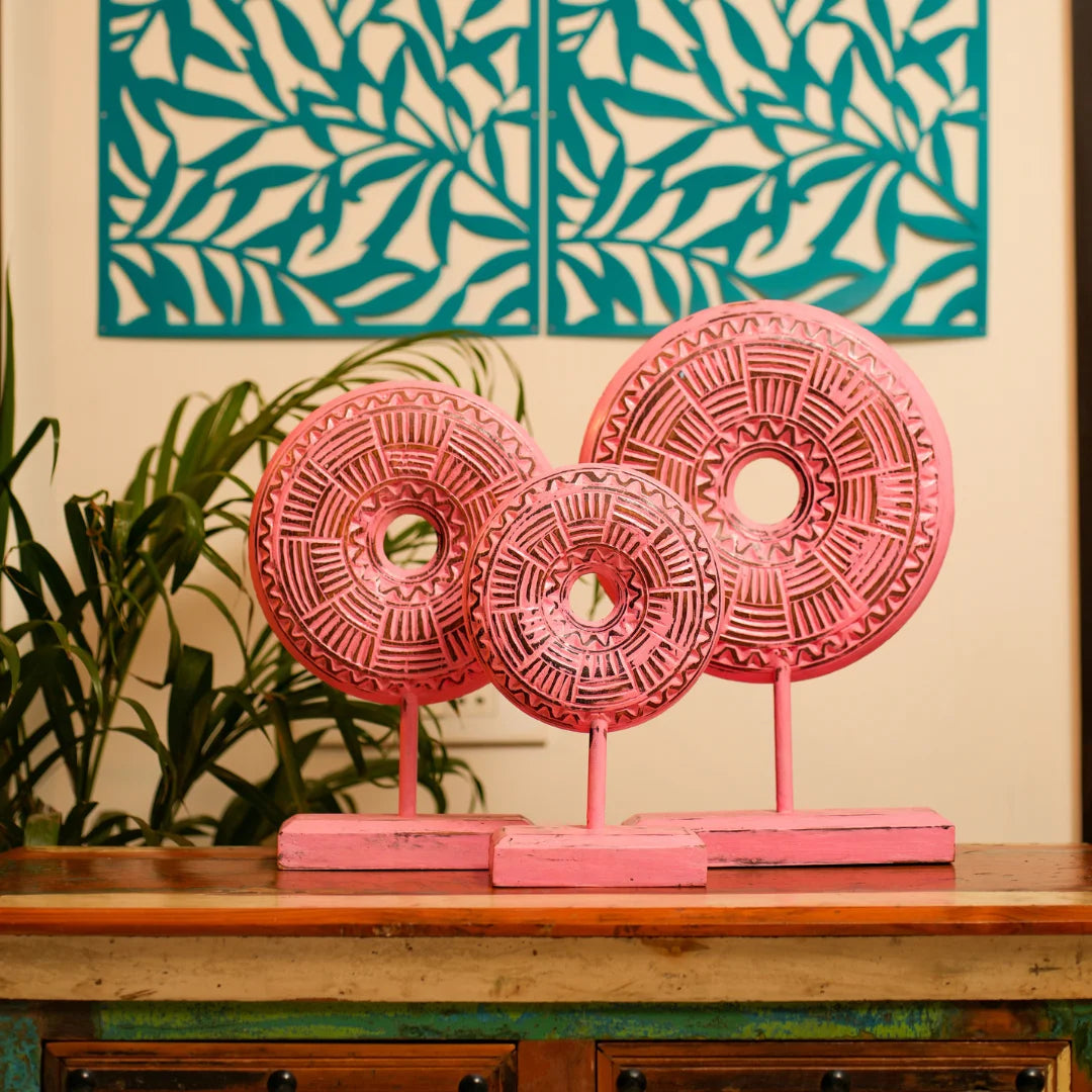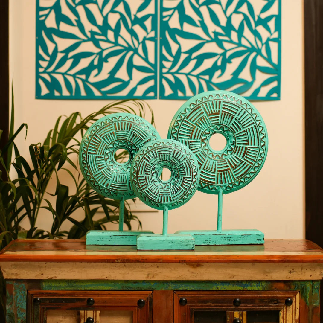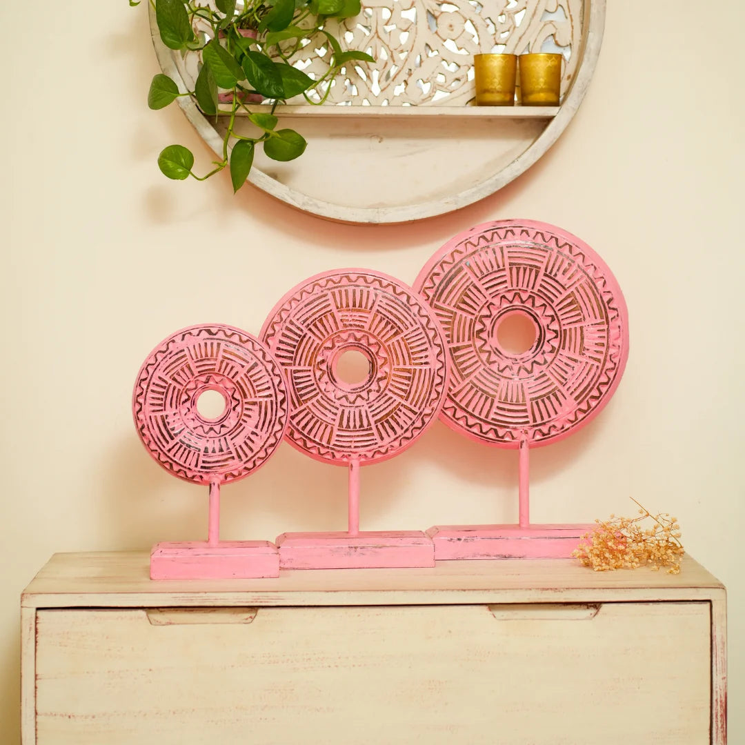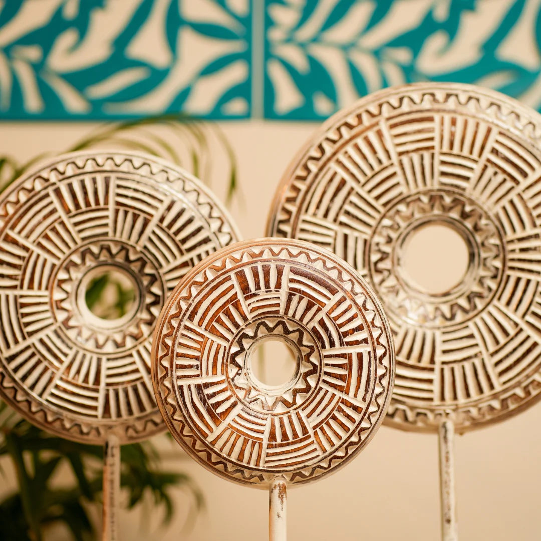 Our Rustic Rounds wooden table decor set is handcrafted from high-quality, sustainably sourced wood. Each of the three round pieces features a unique, distressed finish, showcasing the natural grain and texture of the wood. Perfect for adding a touch of rustic charm to your home, this set is ideal for coffee tables, side tables, or shelves.