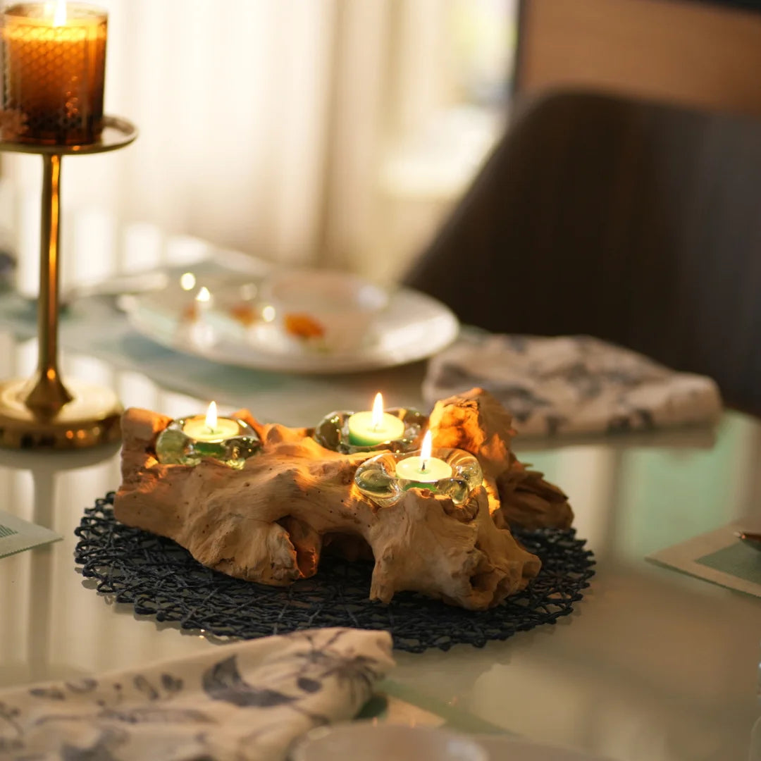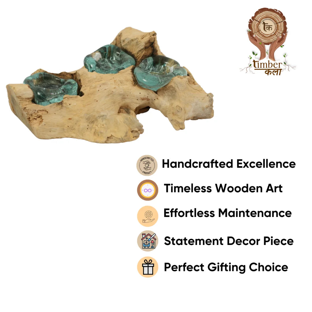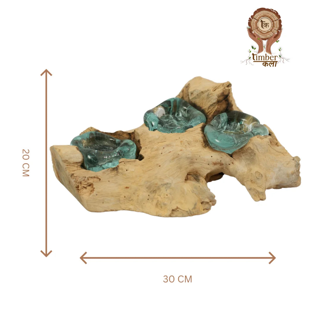 Timber Kala’s 3 Glass Triangle Woodfire for Decor combines the organic beauty of wood on the base and the smooth shine of glass on the top. Beautifully triangular wood fire table decor with a wood base and triangular glass top timeless yet contemporary. Suitable for a dining table, coffee table, side table or the shelf. Handcrafted rustic triangular woodfire table decor made by Handcrafted glass wooden glass decor adds warmth and character to any room. Enhancing its beauty, you can’t help but notice the enticing design invites a closer look, any designer would talk about.