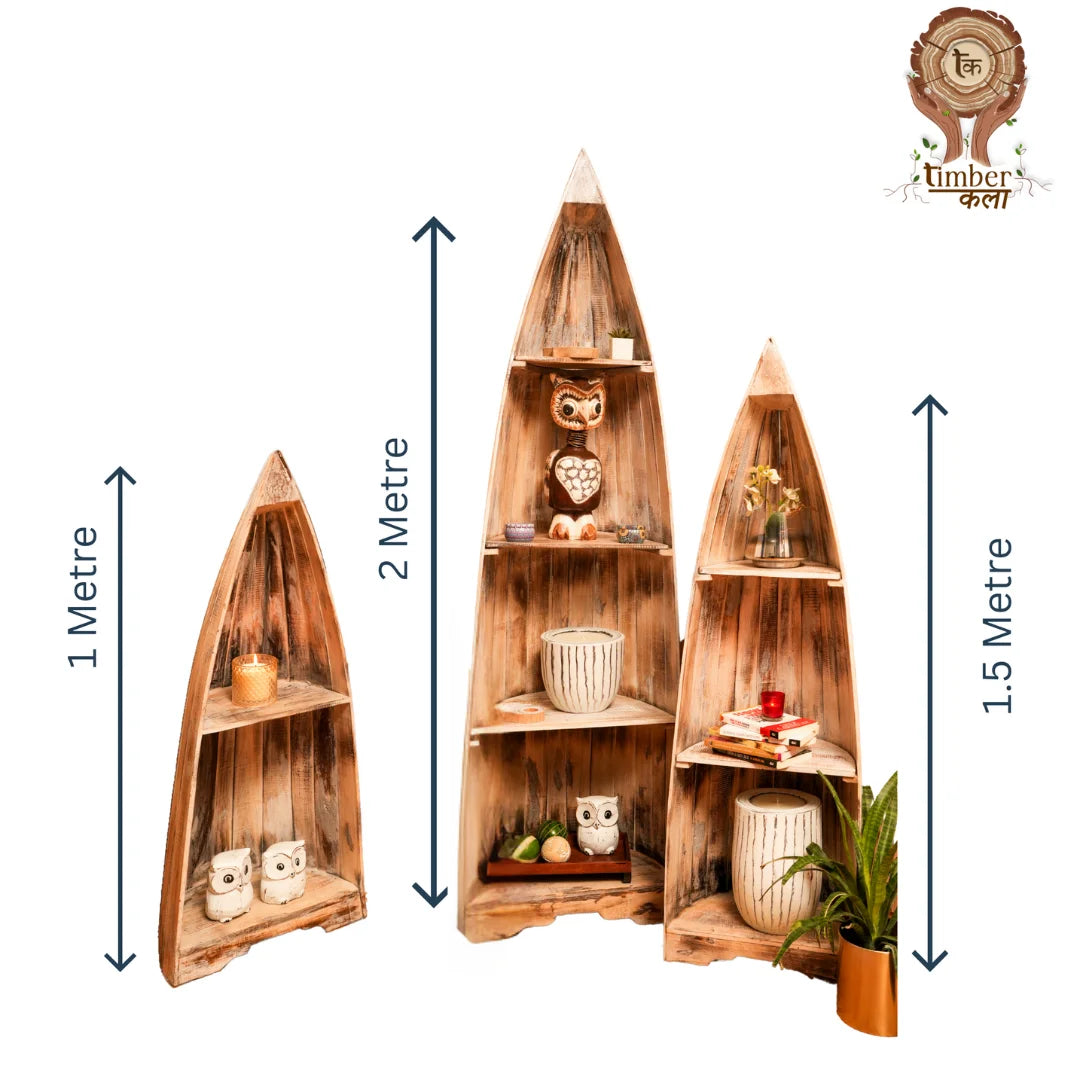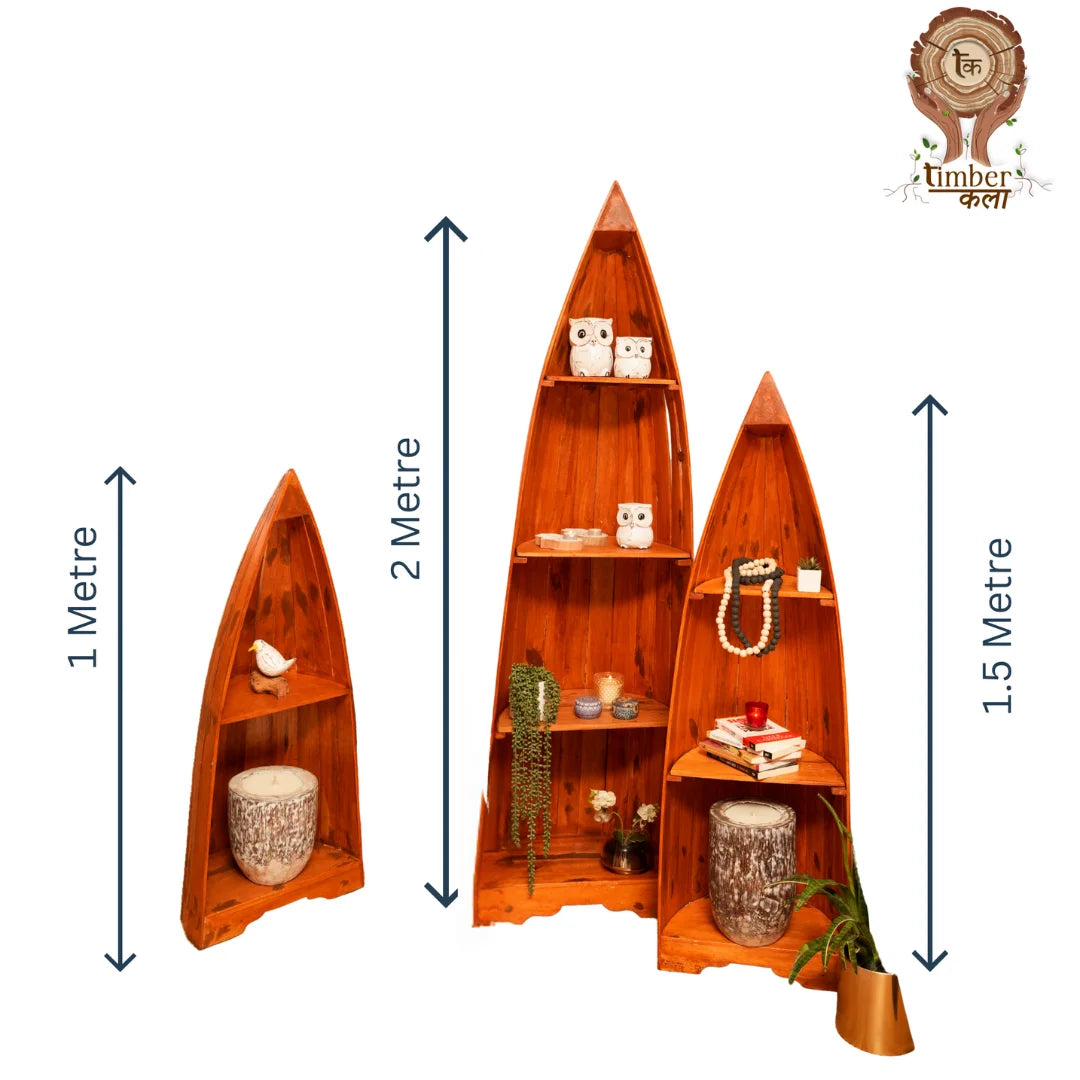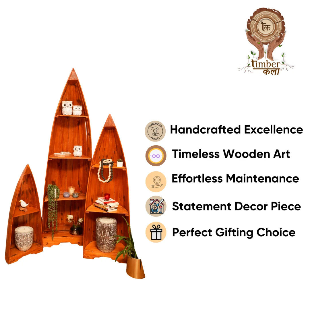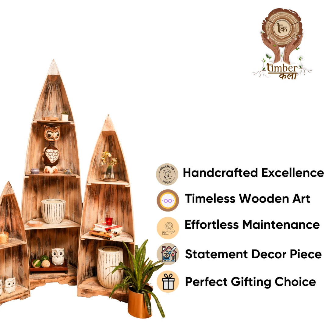 Our wooden boat-shaped rack is handcrafted from high-quality wood, ensuring a unique and rustic charm. The sturdy design and ample storage space make it perfect for storing books or decorative items . The smooth finish and natural wood grain add a touch of warmth and coziness to any room.