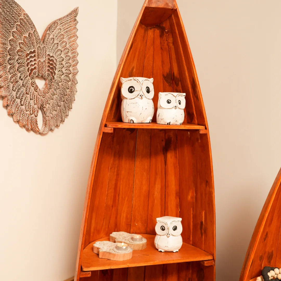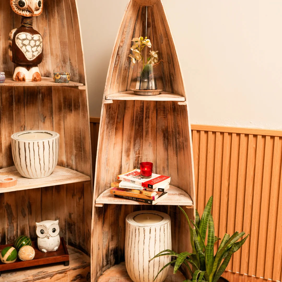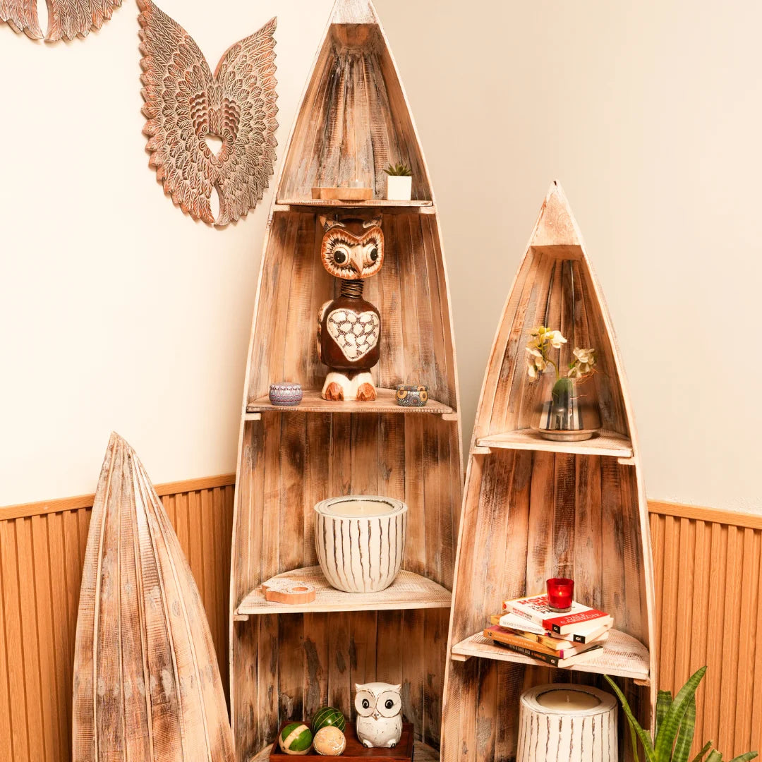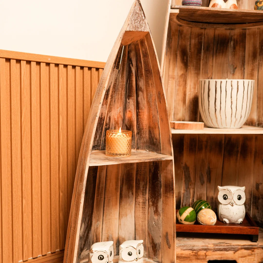 Our wooden boat-shaped rack is handcrafted from high-quality wood, ensuring a unique and rustic charm. The sturdy design and ample storage space make it perfect for storing books or decorative items . The smooth finish and natural wood grain add a touch of warmth and coziness to any room.
