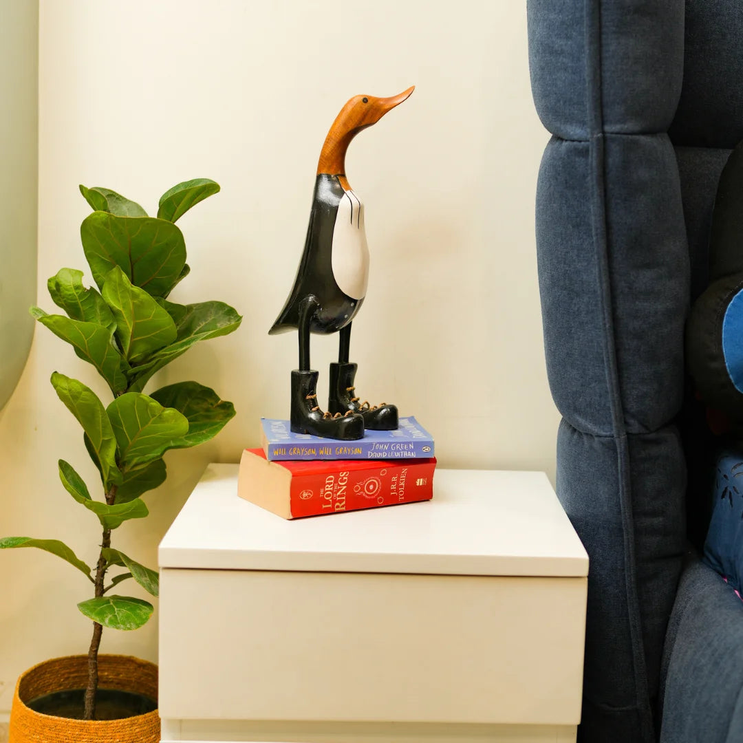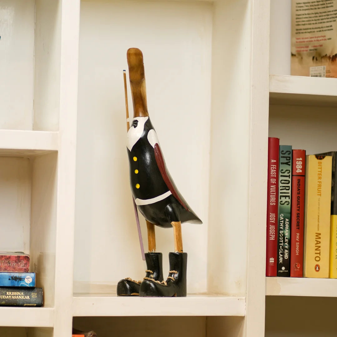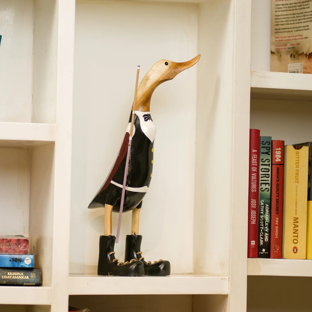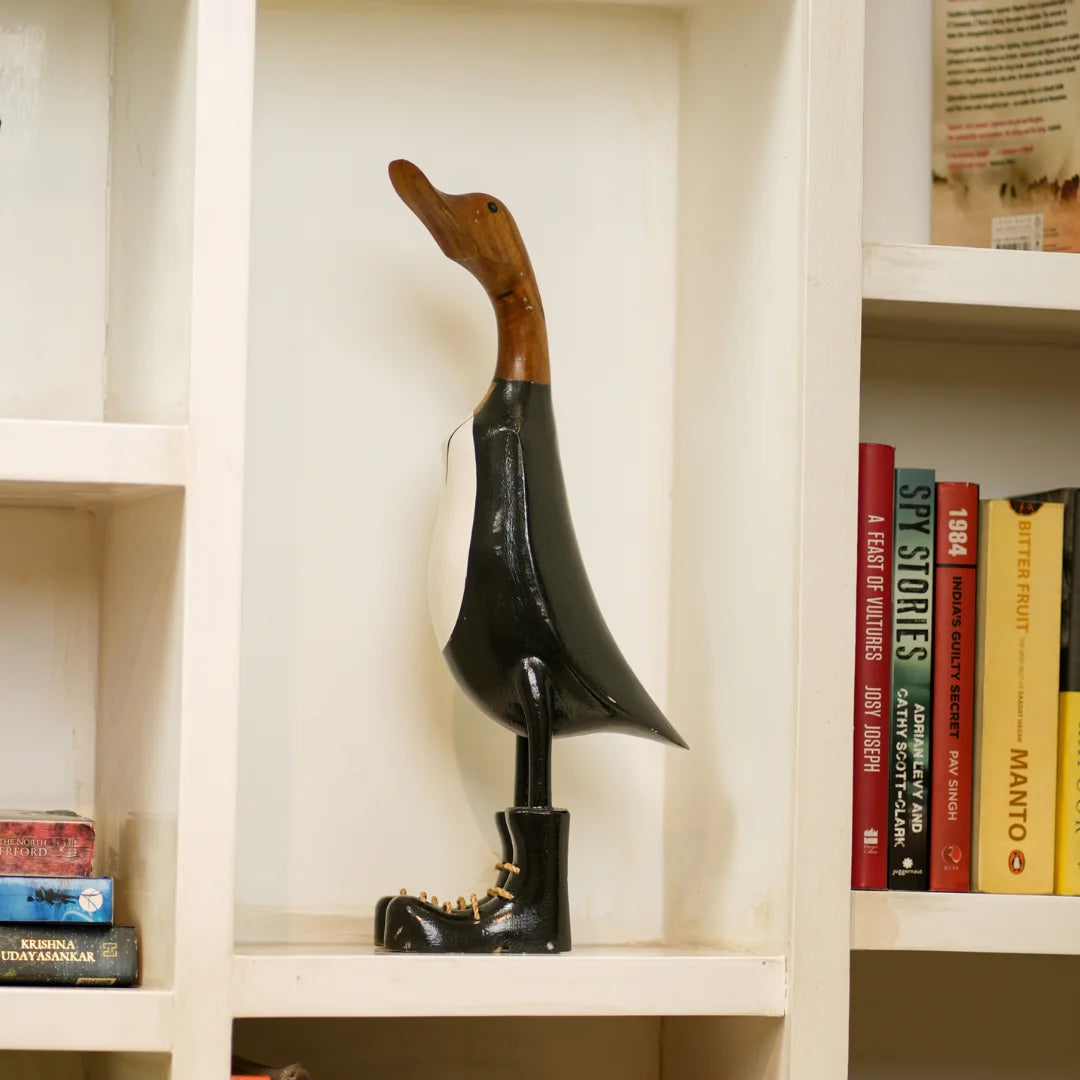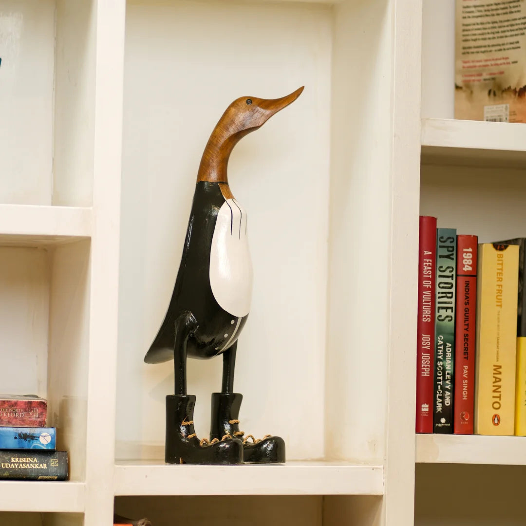 Timber Kala's Large Swagger Duck for Decor is an adorable, hand-carved wooden duck which adds rustic element and lively personality to any room. This Handcrafted Wooden Swagger Duck Decor measures 50cm tall and the intricate carving displays the artistry of the craftsman.  As Large Rustic Wooden Duck Sculpture, this item makes a statement on your shelves, on your mantel, or on your tabletop. It is also a Whimsical Wooden Duck Shelf Display which adds playful element wherever it is placed, while performing beautifully as Natural Wooden Duck Room Decor which can enhance both traditional and contemporary spaces.