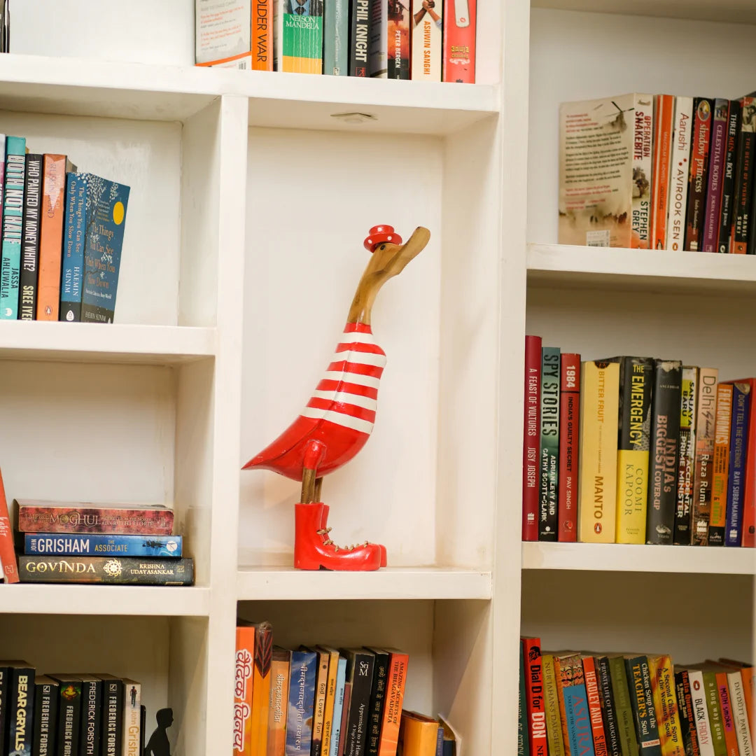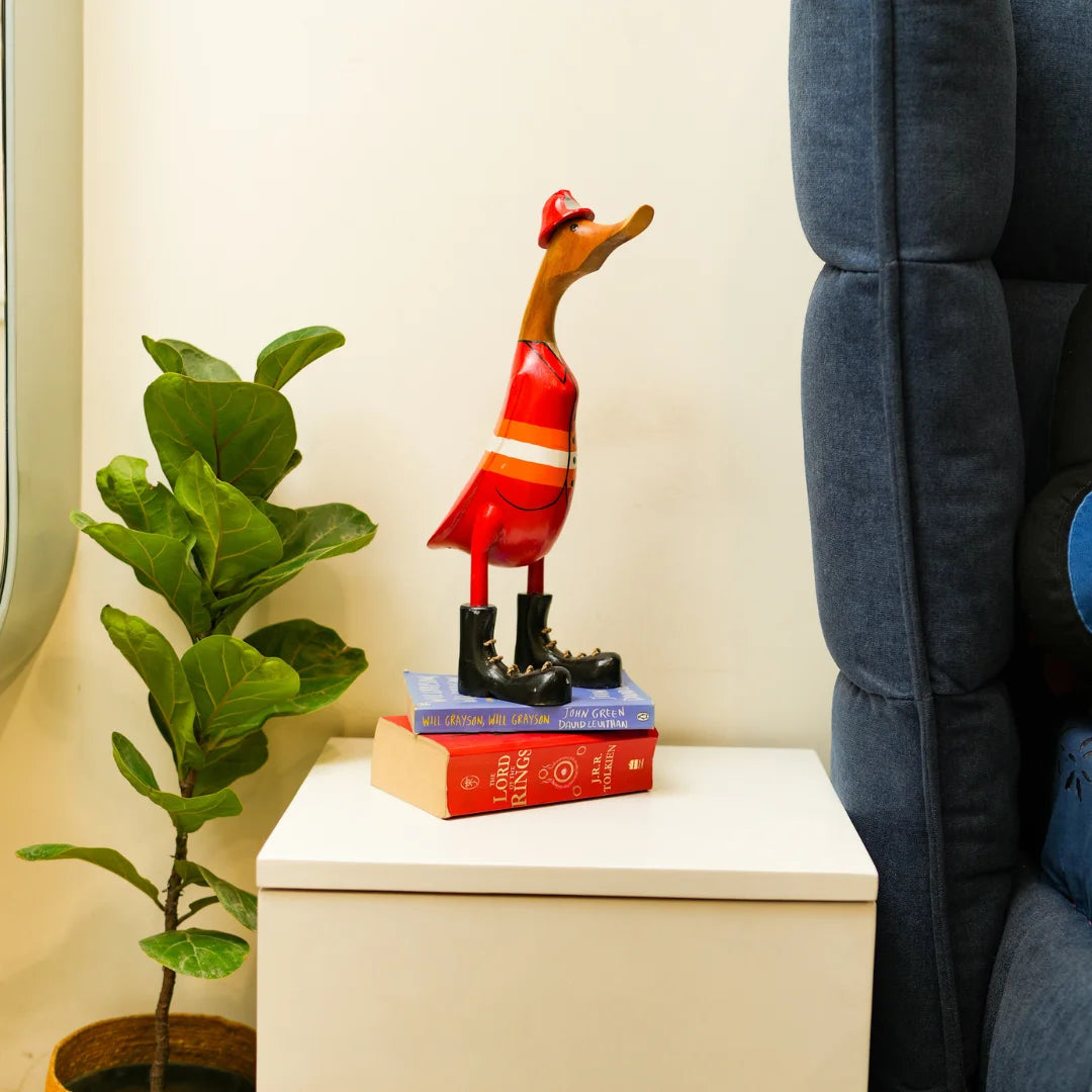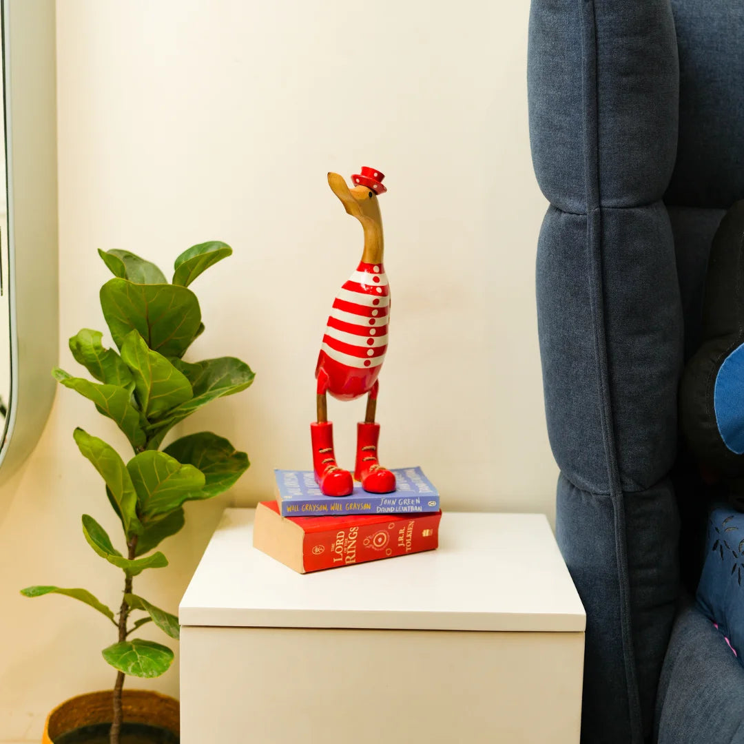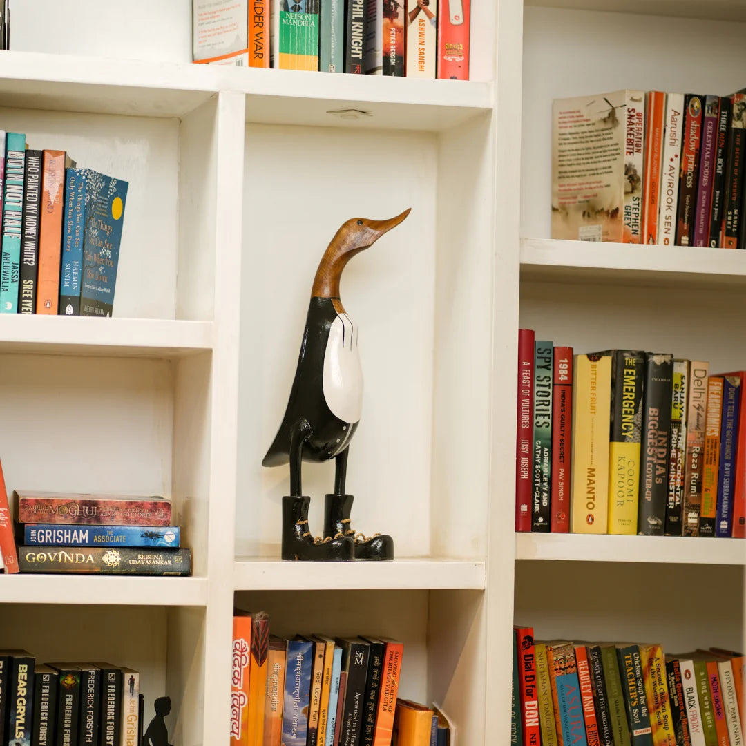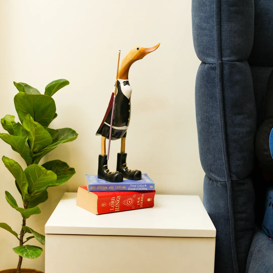 Timber Kala's Large Swagger Duck for Decor is an adorable, hand-carved wooden duck which adds rustic element and lively personality to any room. This Handcrafted Wooden Swagger Duck Decor measures 50cm tall and the intricate carving displays the artistry of the craftsman.  As Large Rustic Wooden Duck Sculpture, this item makes a statement on your shelves, on your mantel, or on your tabletop. It is also a Whimsical Wooden Duck Shelf Display which adds playful element wherever it is placed, while performing beautifully as Natural Wooden Duck Room Decor which can enhance both traditional and contemporary spaces.