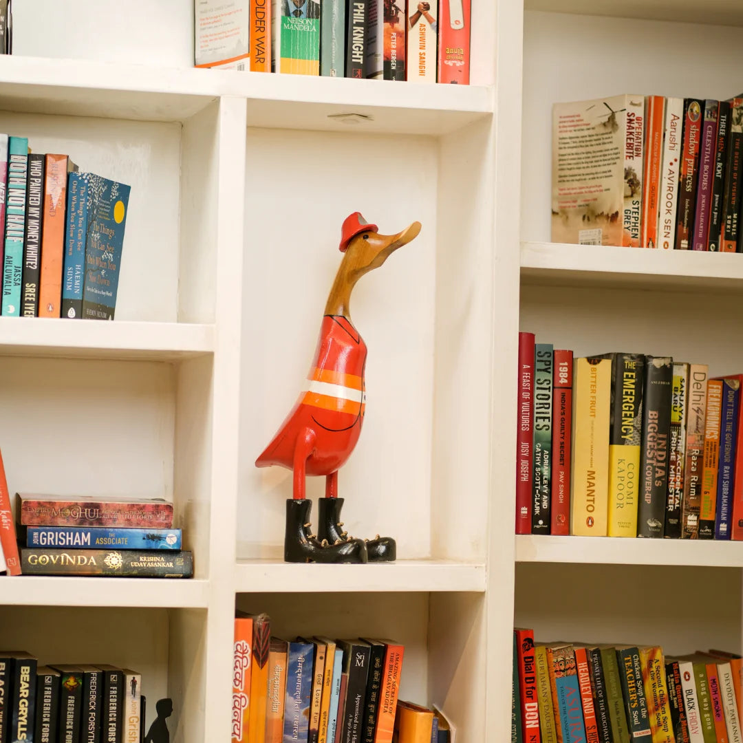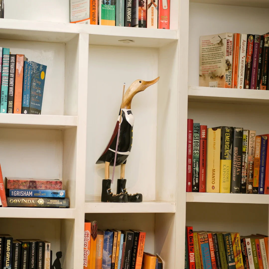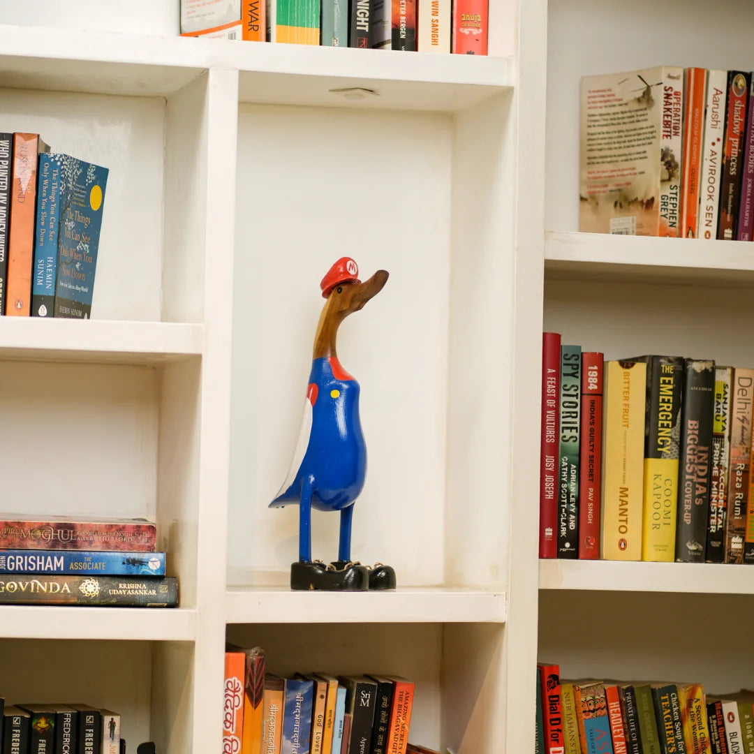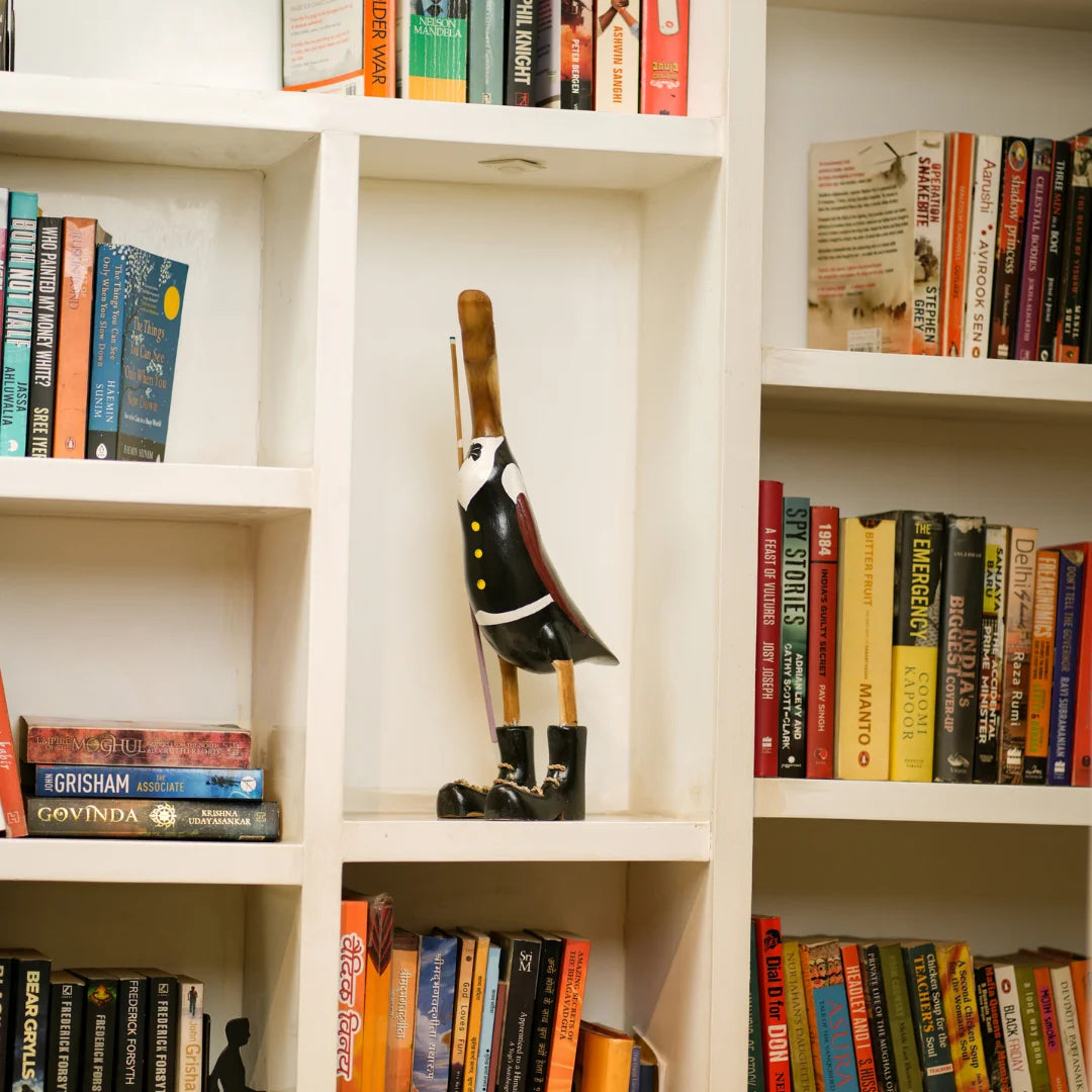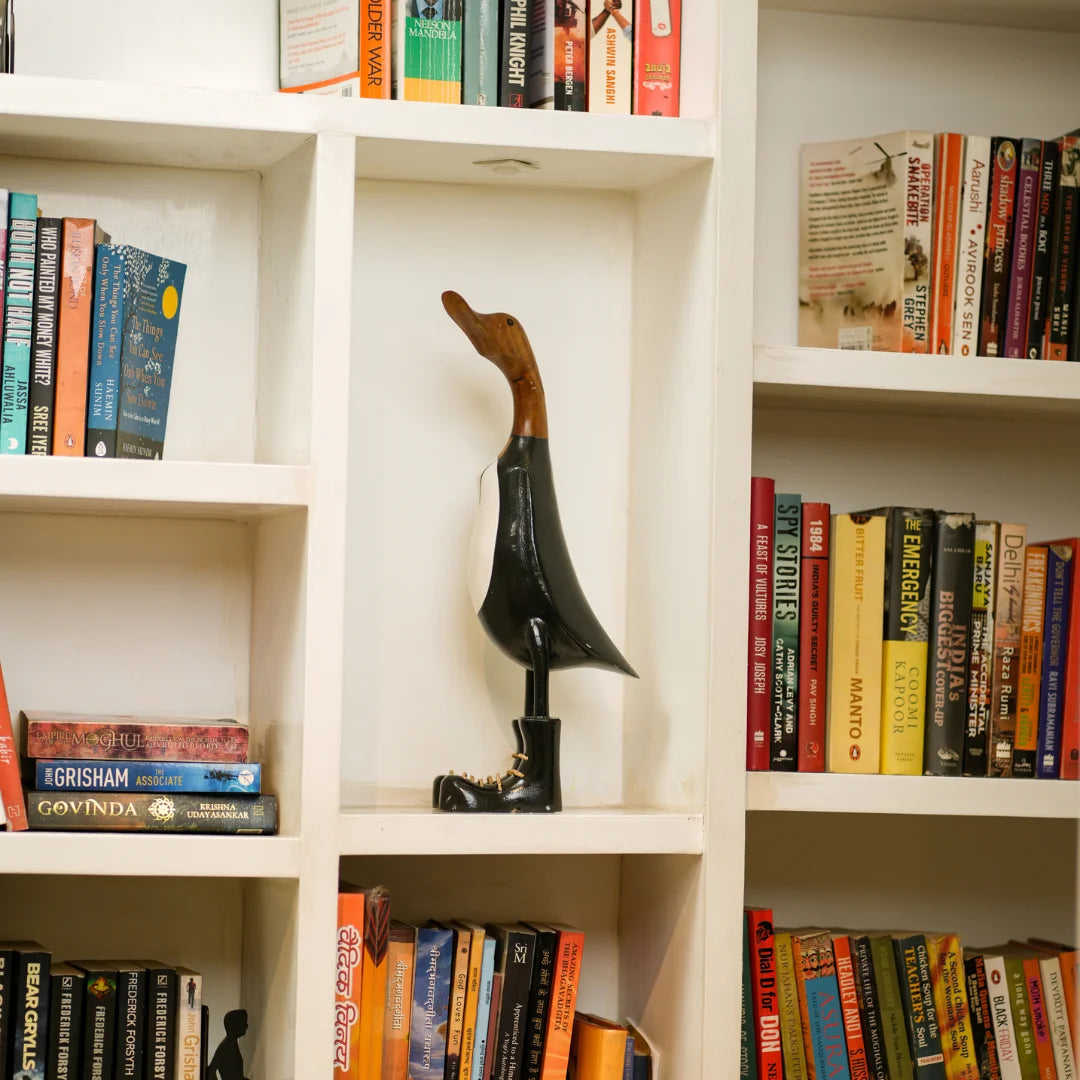 Timber Kala's Large Swagger Duck for Decor is an adorable, hand-carved wooden duck which adds rustic element and lively personality to any room. This Handcrafted Wooden Swagger Duck Decor measures 50cm tall and the intricate carving displays the artistry of the craftsman.  As Large Rustic Wooden Duck Sculpture, this item makes a statement on your shelves, on your mantel, or on your tabletop. It is also a Whimsical Wooden Duck Shelf Display which adds playful element wherever it is placed, while performing beautifully as Natural Wooden Duck Room Decor which can enhance both traditional and contemporary spaces.