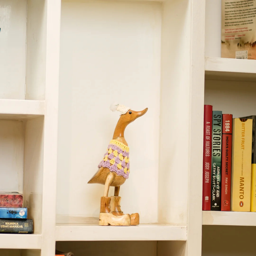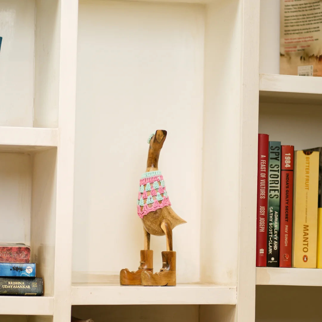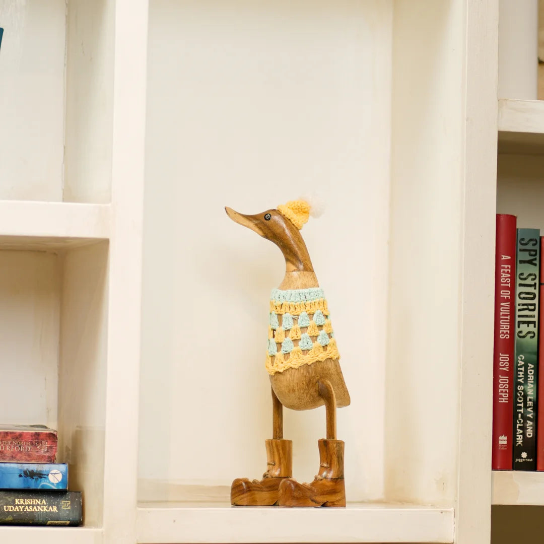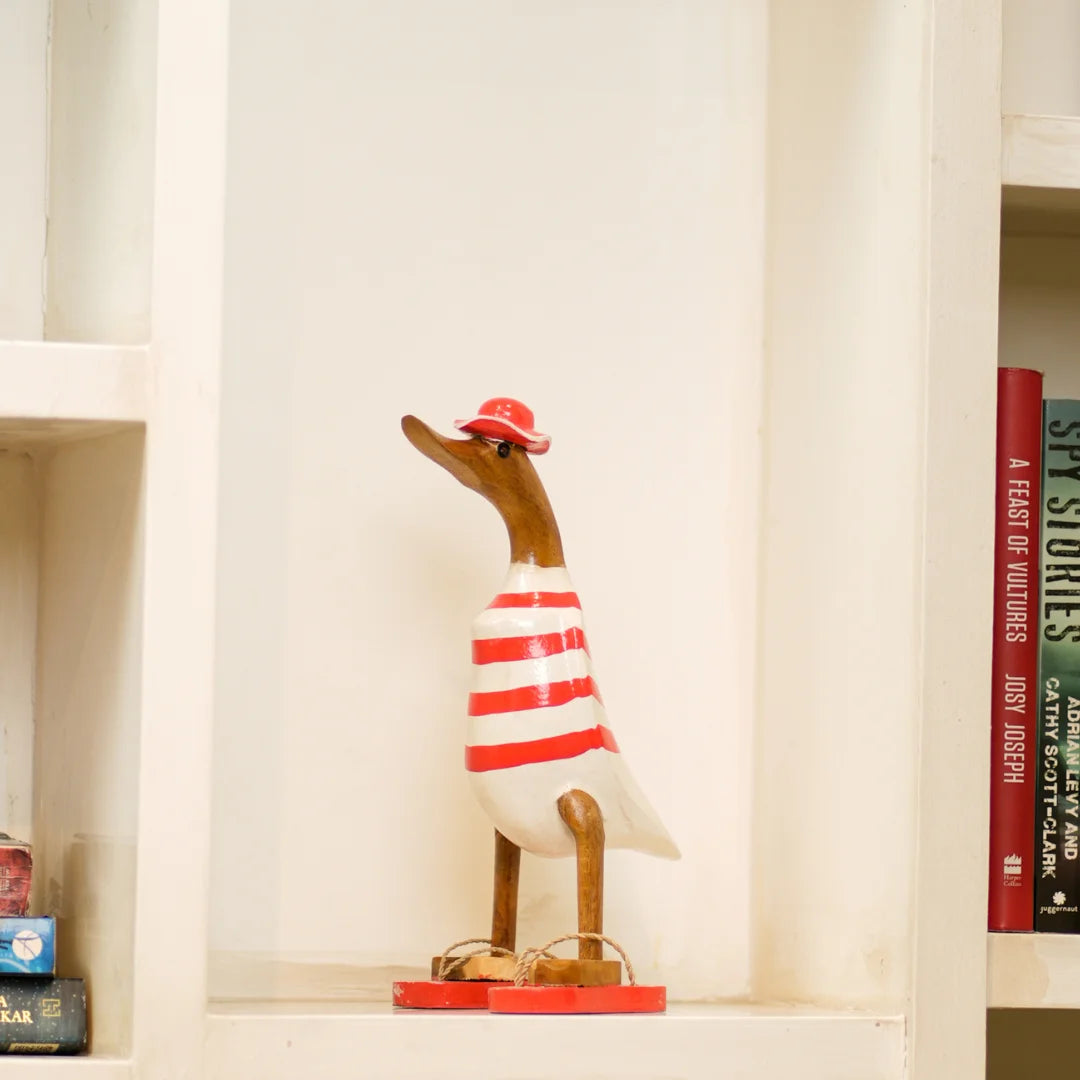 Swagger Duck is a charming home decor item that brings a touch of rustic elegance and whimsy to your space. Crafted from high-quality wood, these beautifully carved ducks feature intricate detailing that showcases the artisan's skill. Perfect for adorning shelves, mantels, or tabletops, Wooden Quacks adds warmth and personality to any room. Whether displayed as a standalone centerpiece or part of a nature-inspired theme, these delightful wooden ducks evoke a sense of serenity and playful charm, making them a timeless addition to your home.