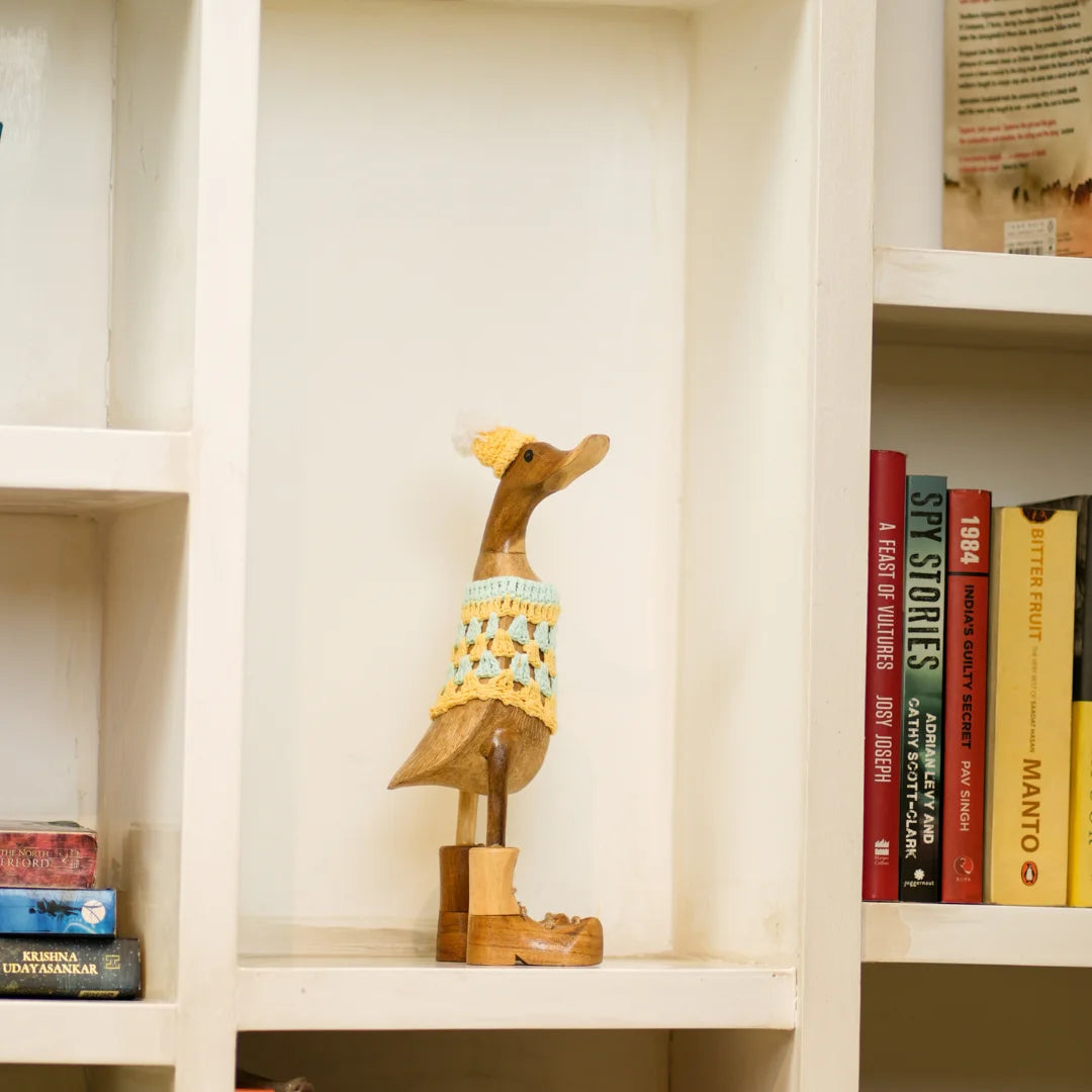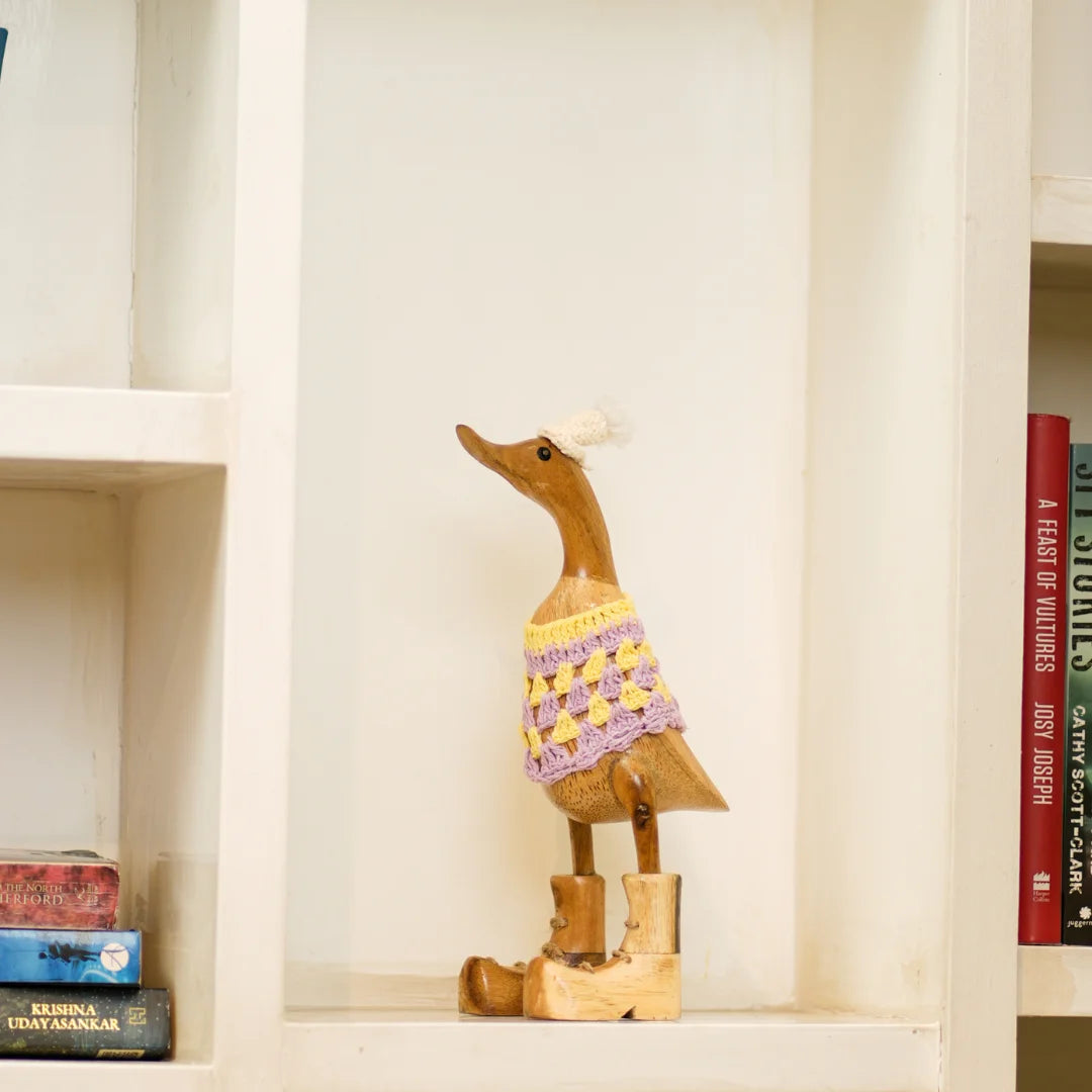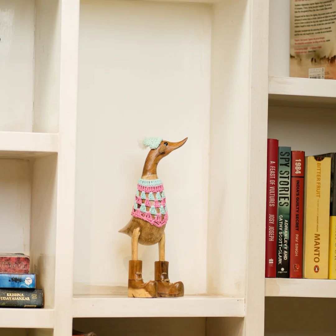 Swagger Duck is a charming home decor item that brings a touch of rustic elegance and whimsy to your space. Crafted from high-quality wood, these beautifully carved ducks feature intricate detailing that showcases the artisan's skill. Perfect for adorning shelves, mantels, or tabletops, Wooden Quacks adds warmth and personality to any room. Whether displayed as a standalone centerpiece or part of a nature-inspired theme, these delightful wooden ducks evoke a sense of serenity and playful charm, making them a timeless addition to your home.