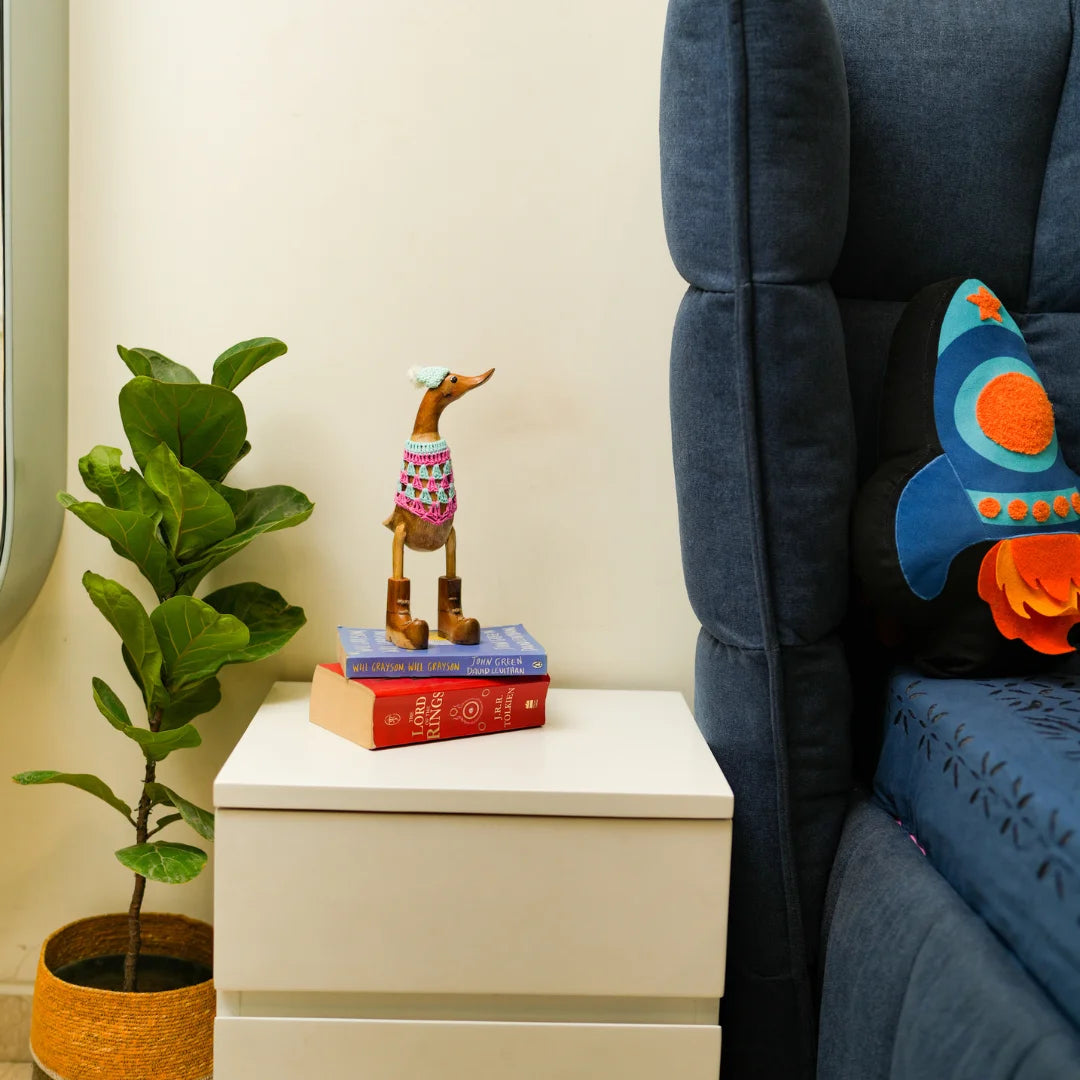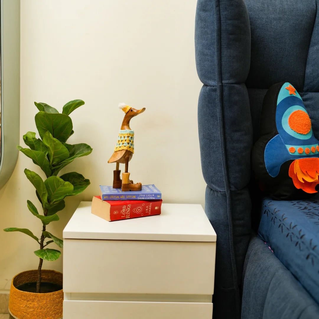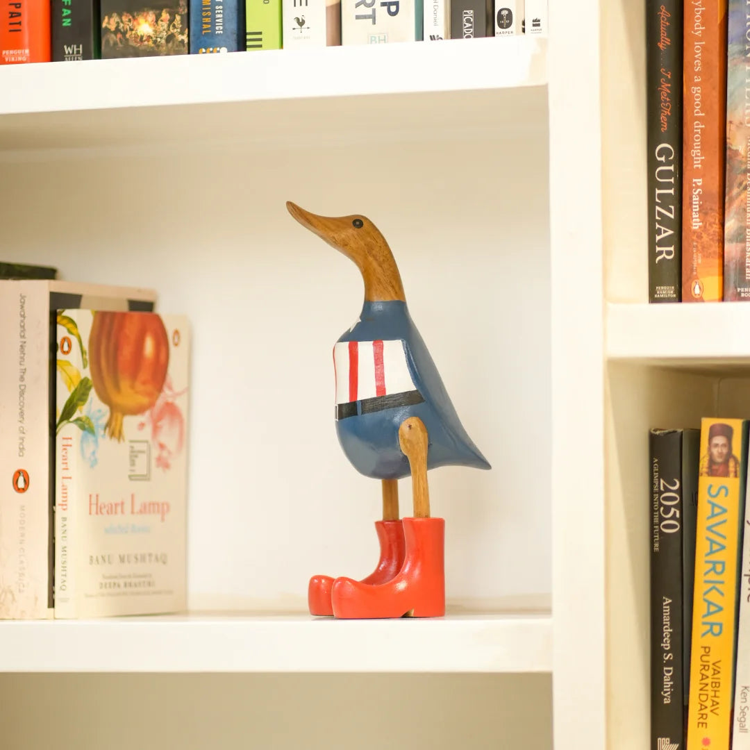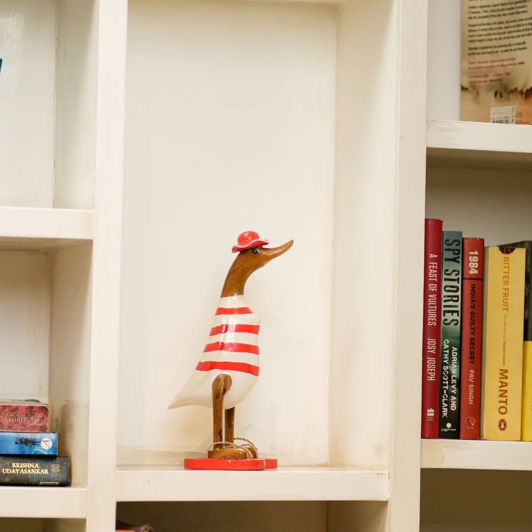 Swagger Duck is a charming home decor item that brings a touch of rustic elegance and whimsy to your space. Crafted from high-quality wood, these beautifully carved ducks feature intricate detailing that showcases the artisan's skill. Perfect for adorning shelves, mantels, or tabletops, Wooden Quacks adds warmth and personality to any room. Whether displayed as a standalone centerpiece or part of a nature-inspired theme, these delightful wooden ducks evoke a sense of serenity and playful charm, making them a timeless addition to your home.