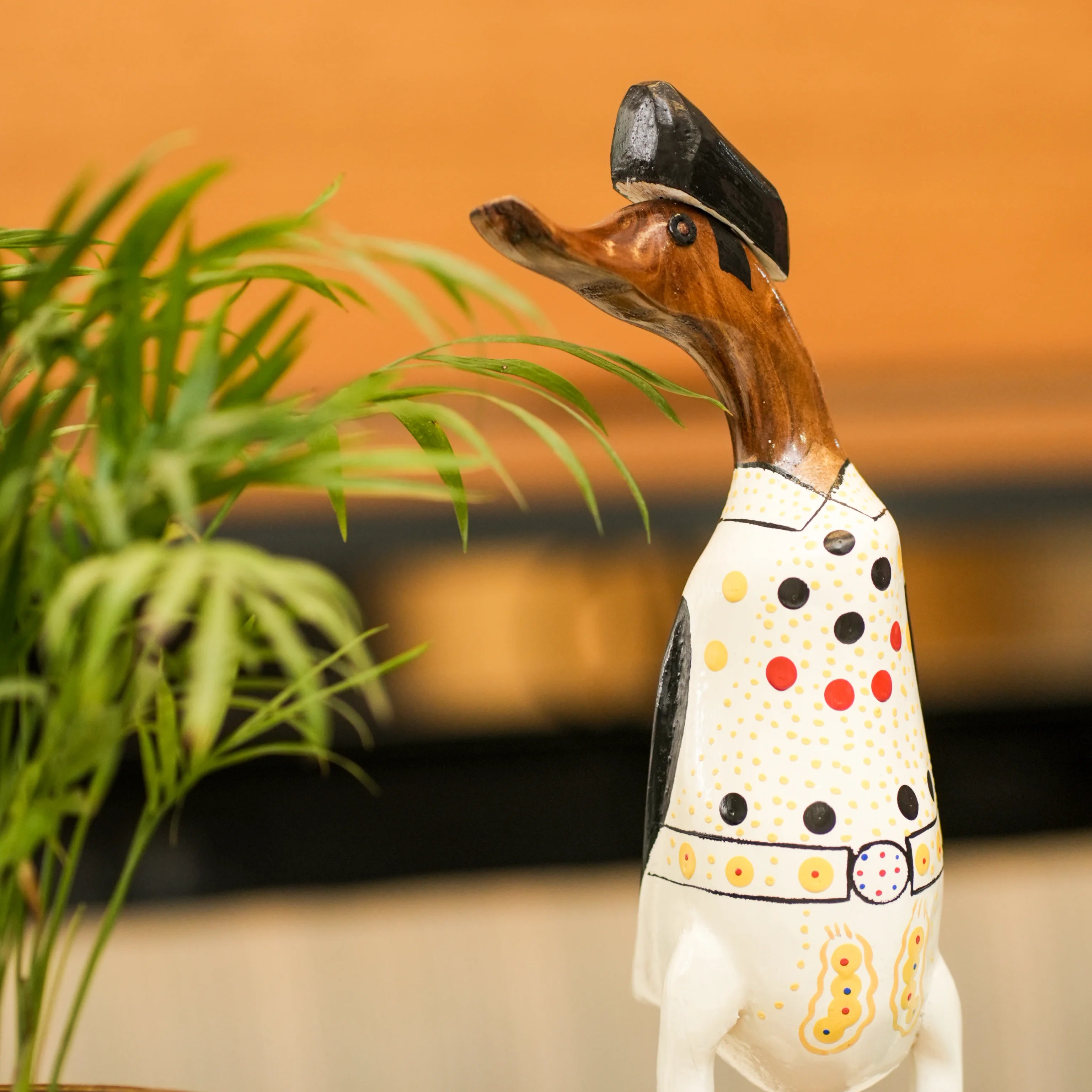 Swagger Duck is a charming home decor item that brings a touch of rustic elegance and whimsy to your space. Crafted from high-quality wood, these beautifully carved ducks feature intricate detailing that showcases the artisan's skill. Perfect for adorning shelves, mantels, or tabletops, Wooden Quacks adds warmth and personality to any room. Whether displayed as a standalone centerpiece or part of a nature-inspired theme, these delightful wooden ducks evoke a sense of serenity and playful charm, making them a timeless addition to your home.
