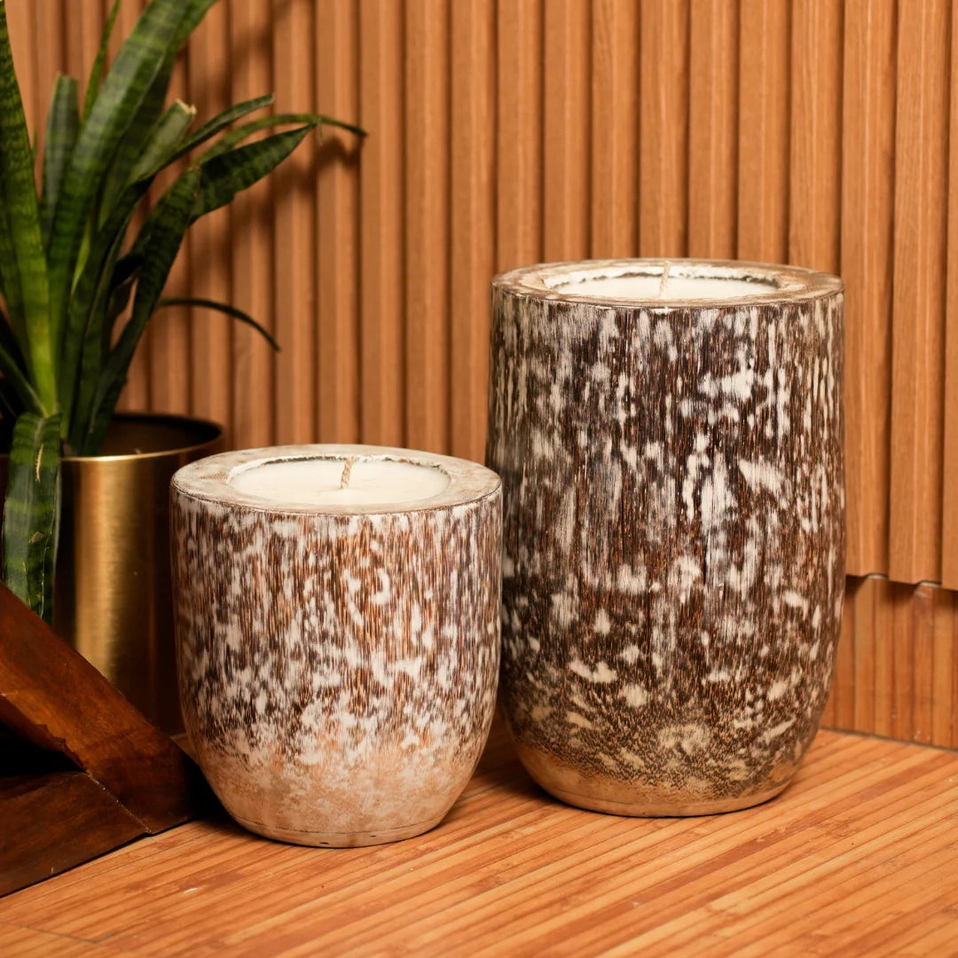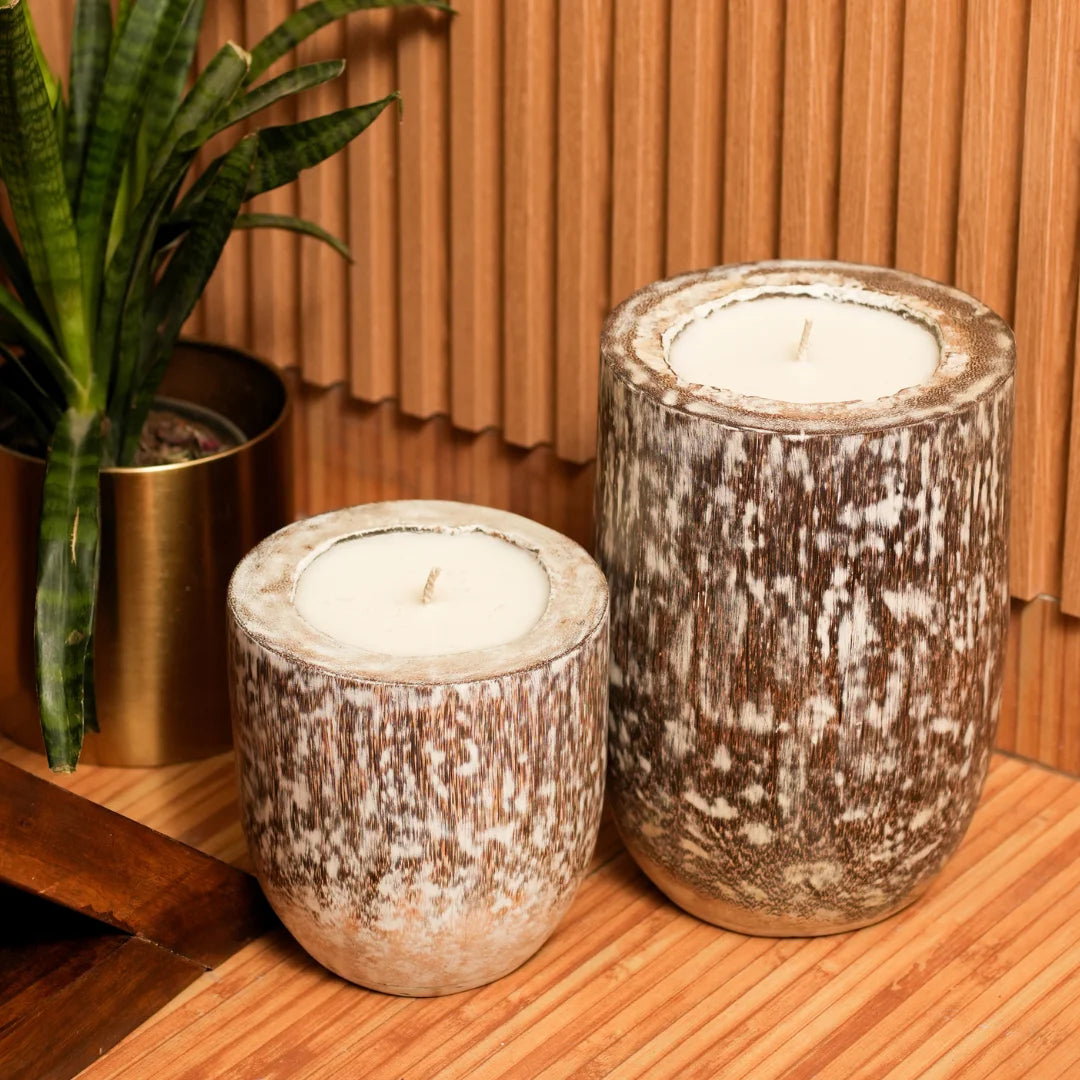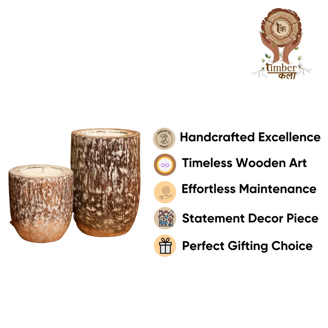 Each wooden candle is carefully handcrafted by skilled artisans, ensuring attention to detail and a commitment to quality. The result is a truly exceptional piece that will be treasured for years to come.Add a touch of rustic sophistication to any room with our enormous wooden candles. Handcrafted from natural wood, these statement pieces bring warmth and ambiance to your space.