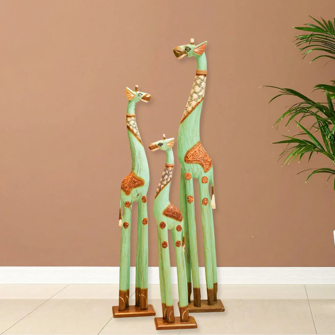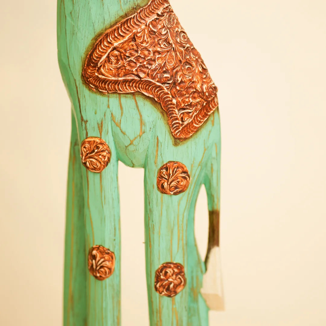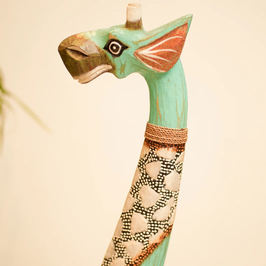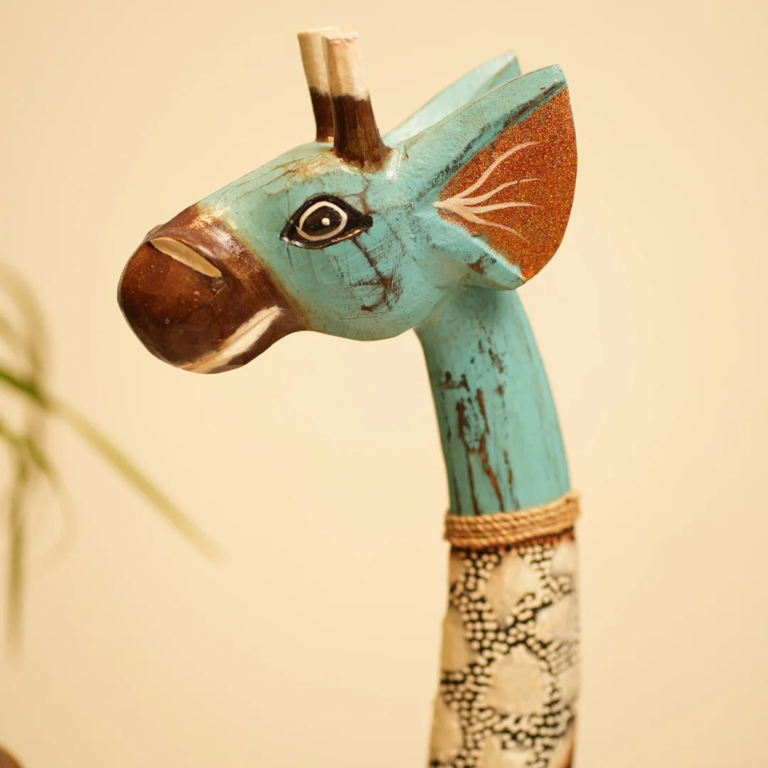 This giraffe belongs to Timber Kala’s Animal & Bird Figurines collection-a line that marries rustic craftsmanship with modern flair. Inspired by nature’s gentle giants, each piece is crafted to reflect creativity, charm, and storytelling. Whether it's standing tall in a living room or peeking out from a bookshelf, this giraffe brings warmth and whimsy to any decor.