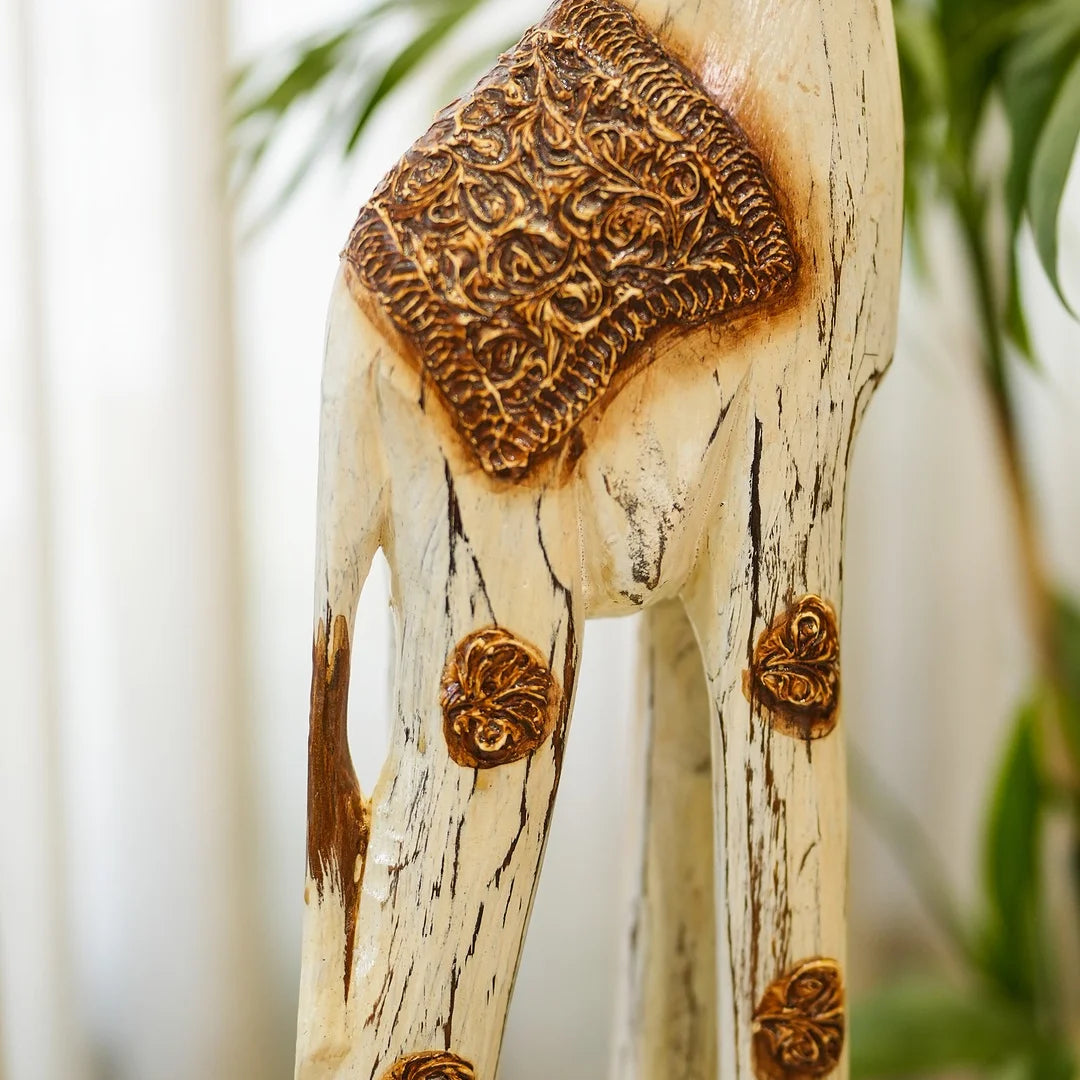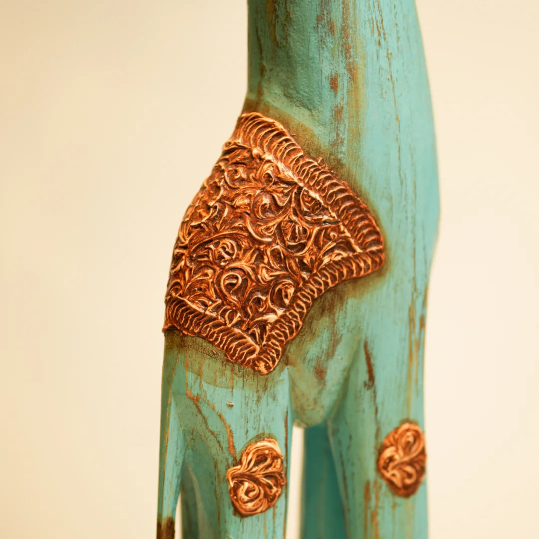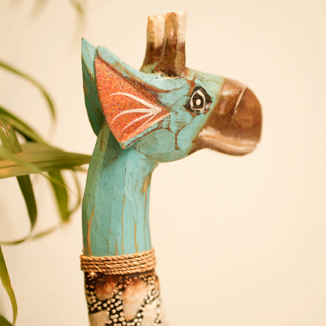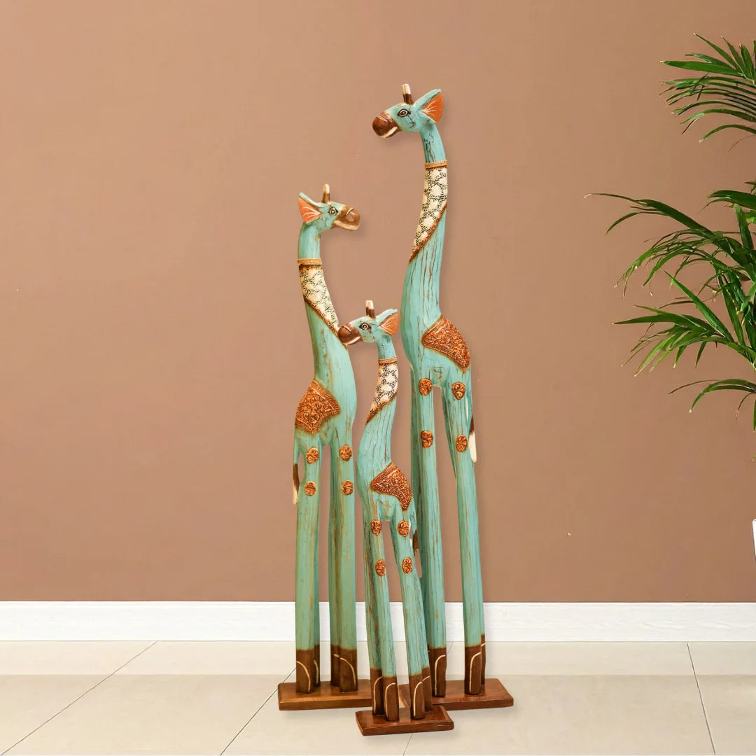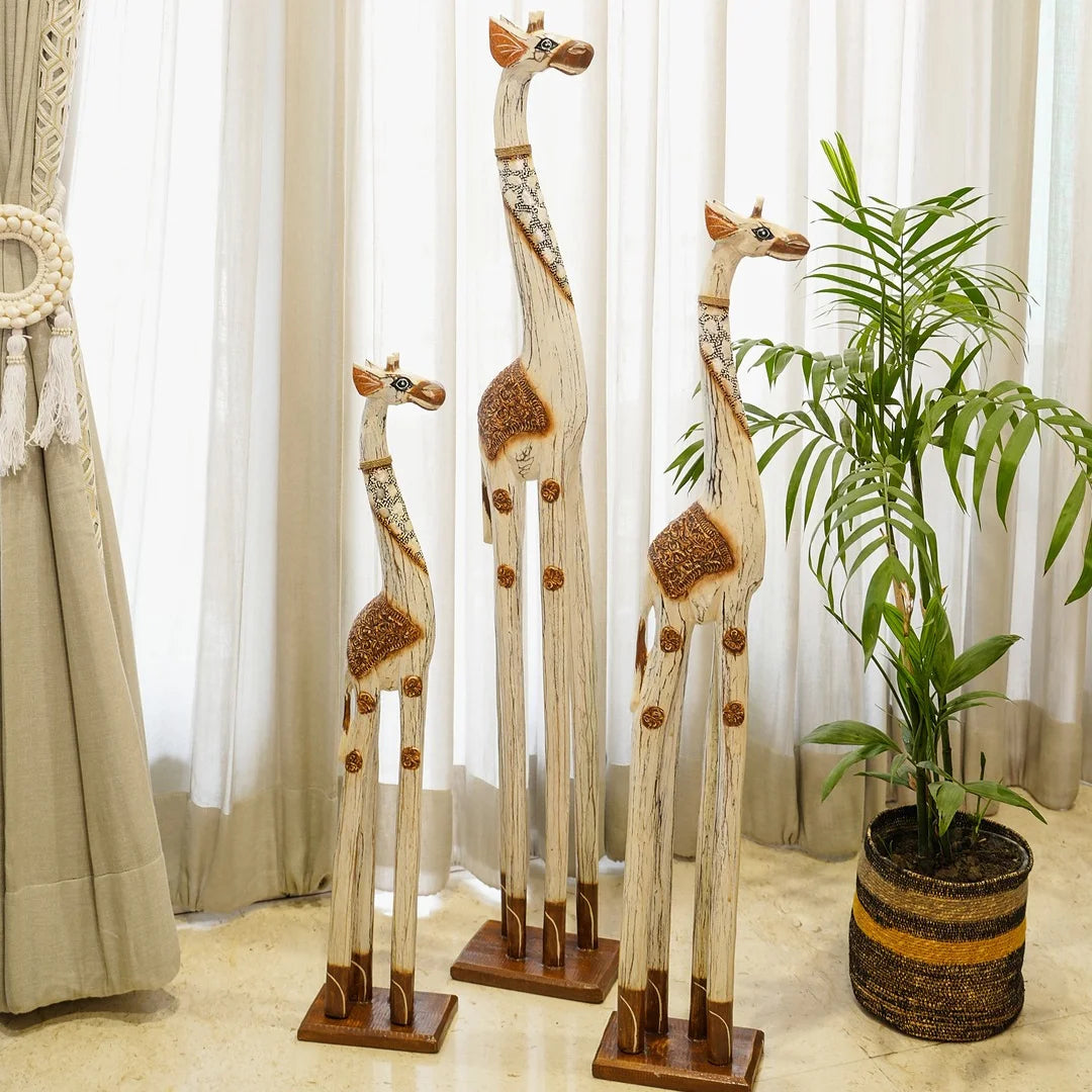 This giraffe belongs to Timber Kala’s Animal & Bird Figurines collection-a line that marries rustic craftsmanship with modern flair. Inspired by nature’s gentle giants, each piece is crafted to reflect creativity, charm, and storytelling. Whether it's standing tall in a living room or peeking out from a bookshelf, this giraffe brings warmth and whimsy to any decor.