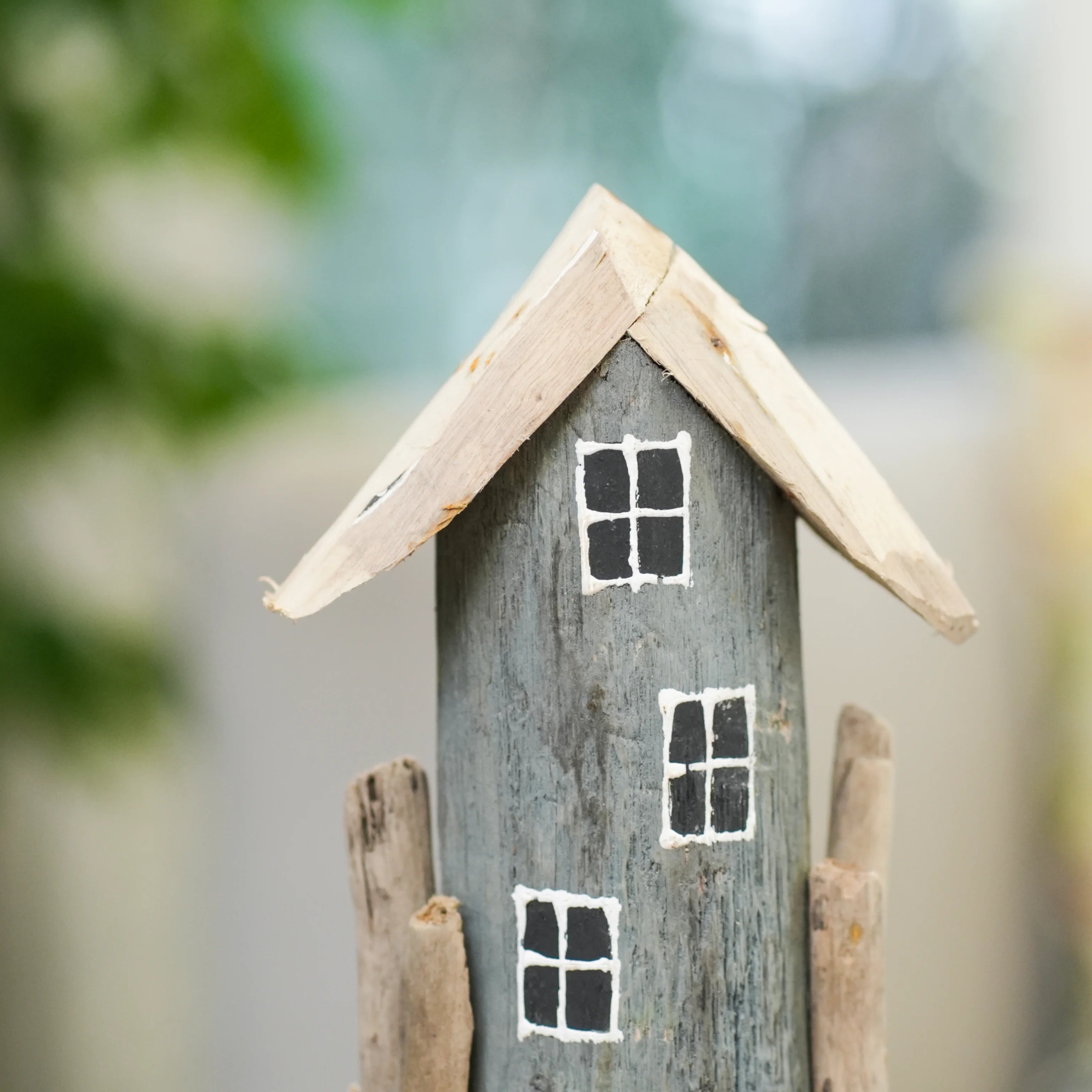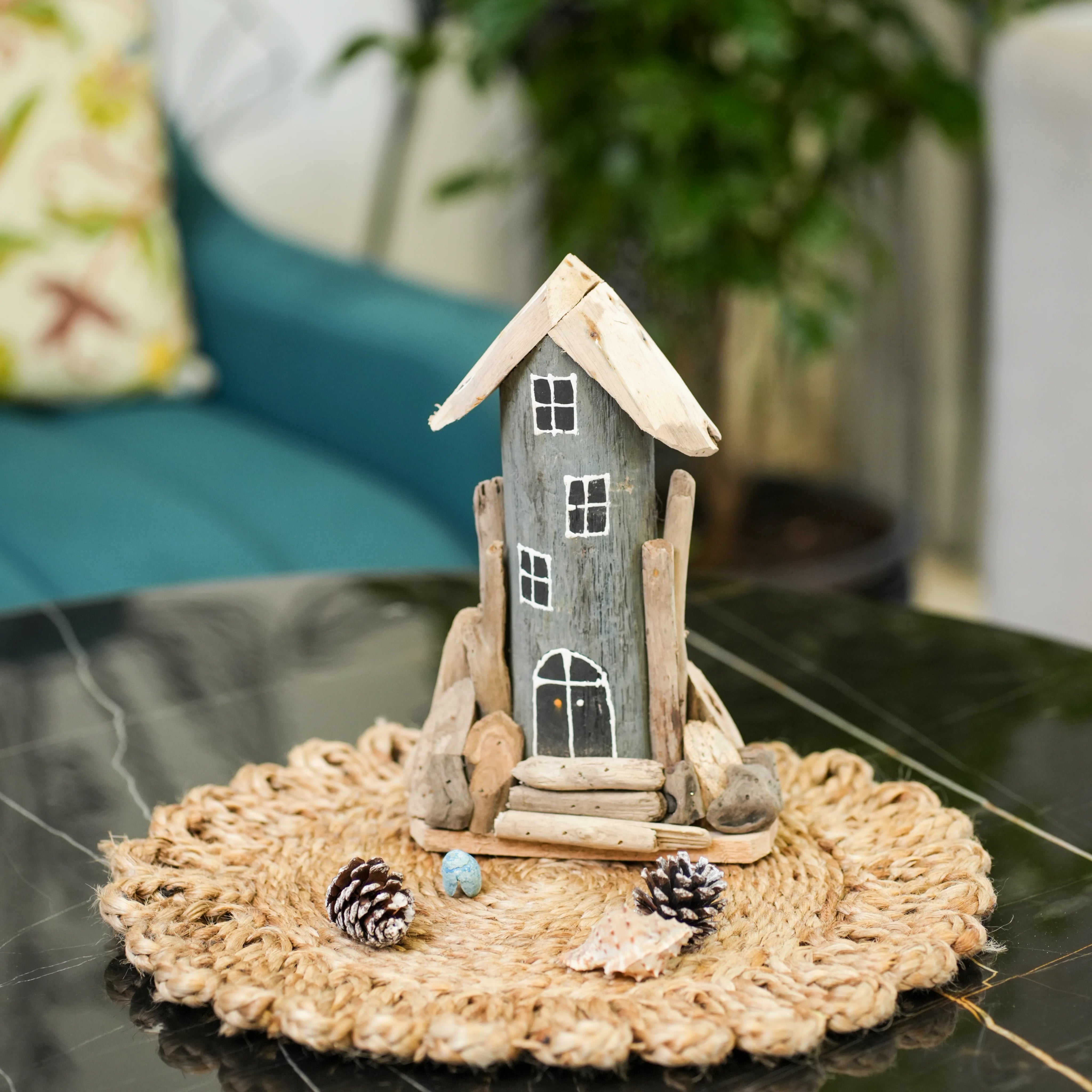Crafted lovingly as a handmade piece using reclaimed wood ‘Driftwood Coastal Dwelling’is a detailed miniature house sculpture surrounded by textured elements resembling driftwood fence , and a hint of coastal landscape. The rustic texture and weathered finish evoke a sense of seaside nostalgia. This unique decor piece adds a touch of coastal warmth to any space, perfect for a living room, entryway, or coastal-themed nook.